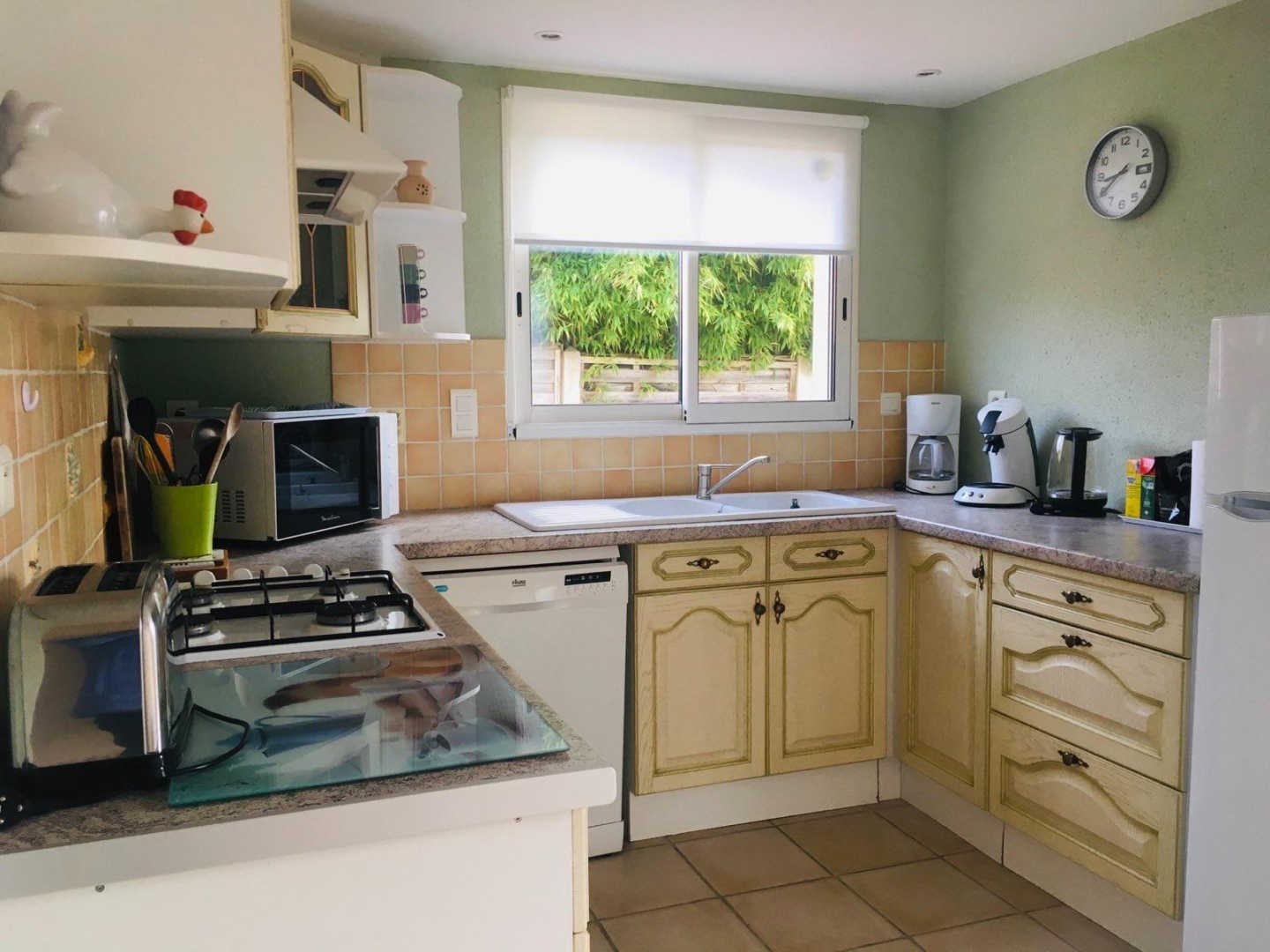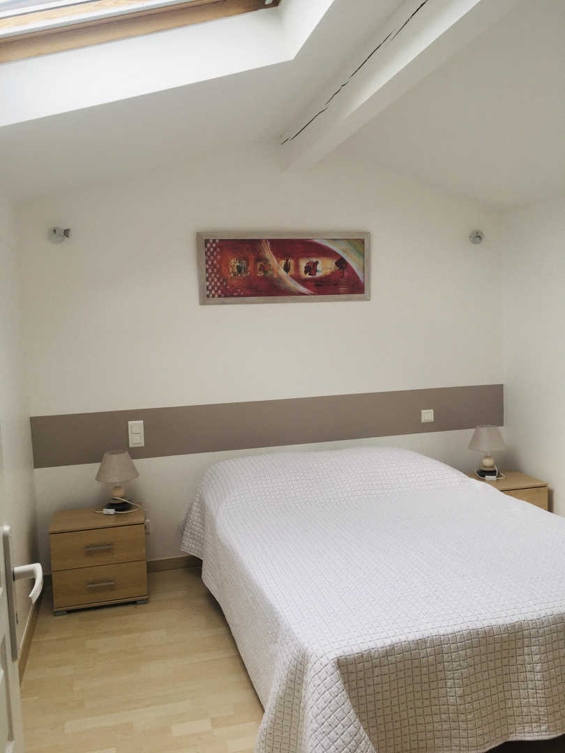 Rez-de-chaussée : salon (canapé, tv) donnant sur la terrasse, salle à manger, cuisine toute équipée (réfigérateur, lave-vaisselle, four, plaque 4 feux gaz, micro-ondes), wc. A l’étage : deux chambres mansardées (fenêtre de toit), chacune avec un lit double en 140, salle de bains avec baignoire d’angle. Equipement bébé.