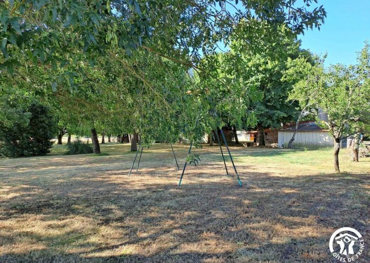 Gîte indépendant, dans un ancien corps de ferme, avec grand terrain de 5000m², cour, abri voiture, portique. Rez-de-chaussée : cuisine, salon (canapé convertible), salle à manger, salle d’eau avec wc. A l’étage : 2 chambres (2 lits doubles, 1 lit pour enfant + 1 lit bébé). Chauffage central (30€/sem en période de fonctionnement). 2 vélos adulte à disposition.