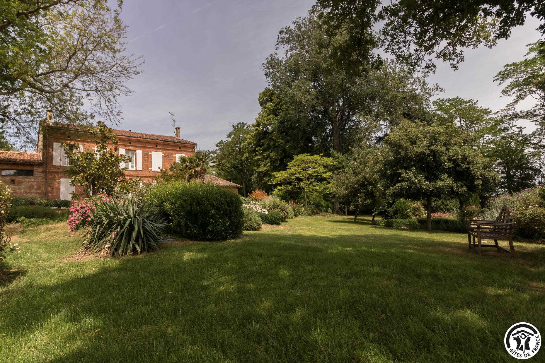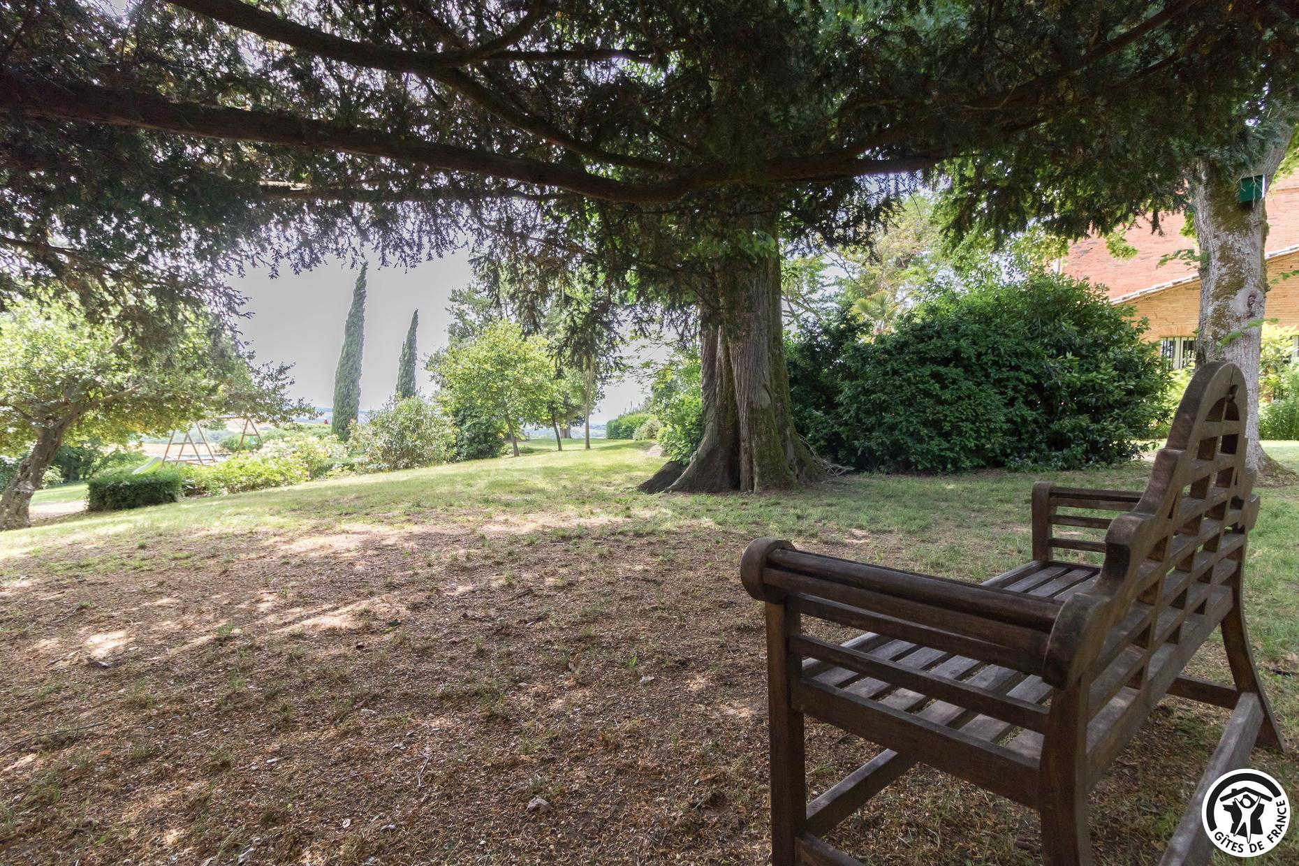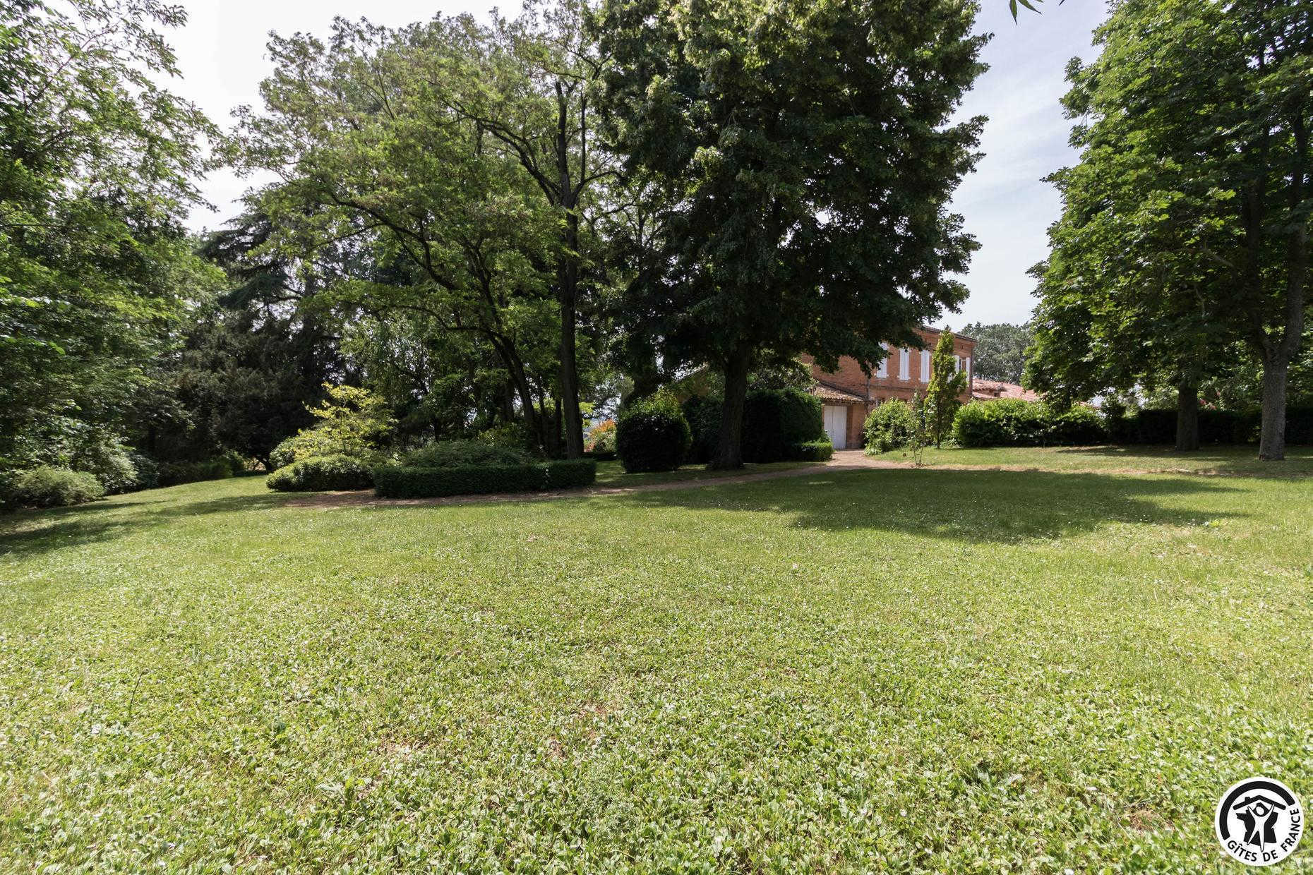 In the heart of an organic farm in the Lauragais region, close to the village of Lanta, park with shady paths, century-old trees, portico and children’s hut.