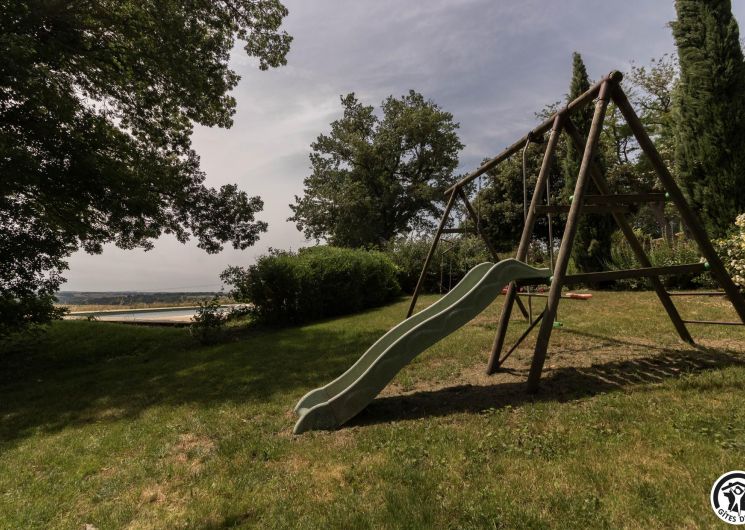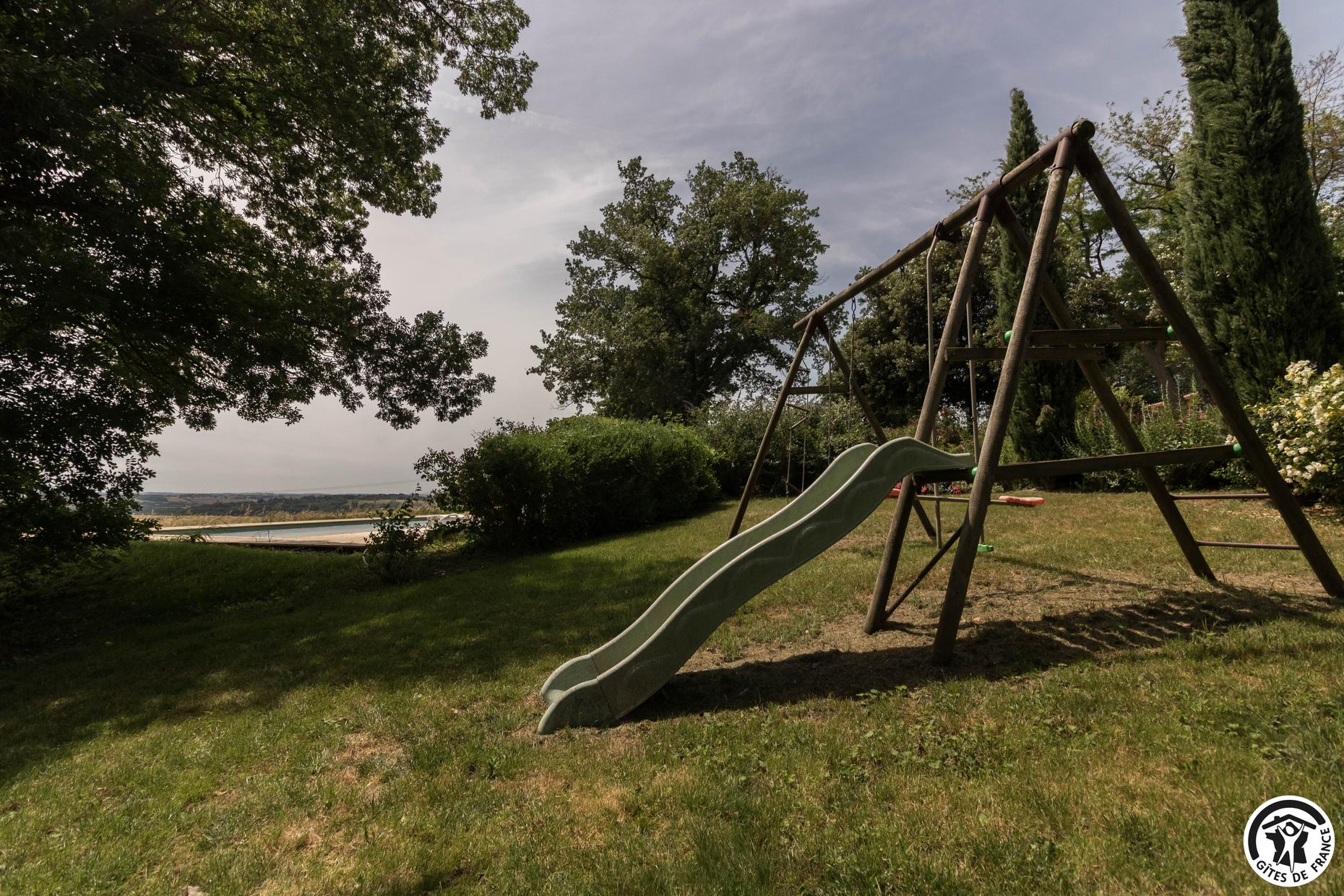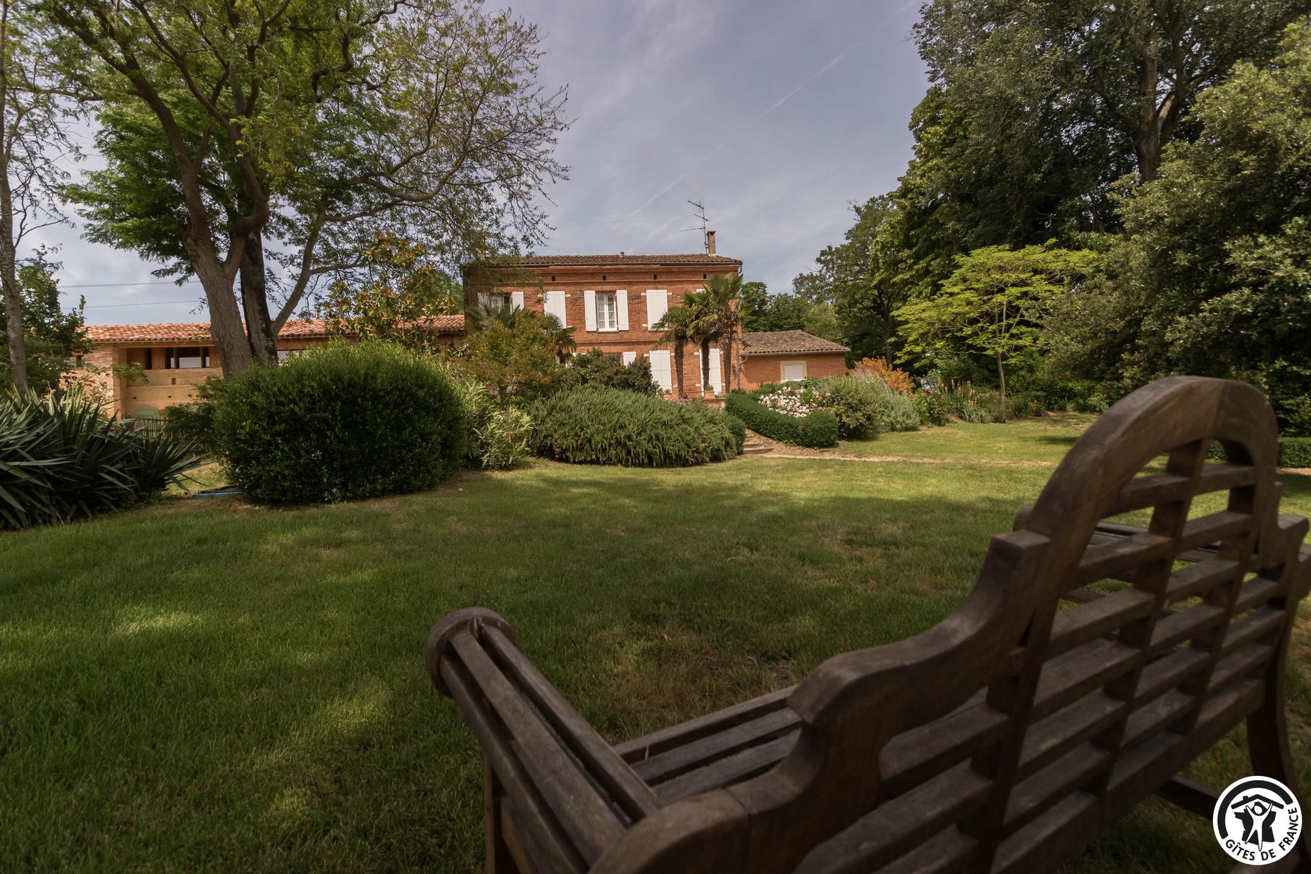 In the heart of an organic farm in the Lauragais region, close to the village of Lanta, park with shady paths, century-old trees, portico and children’s hut.