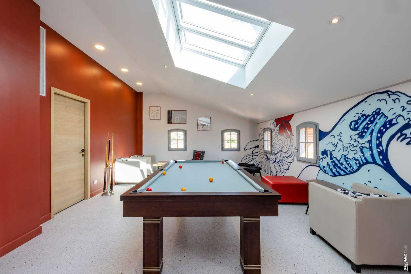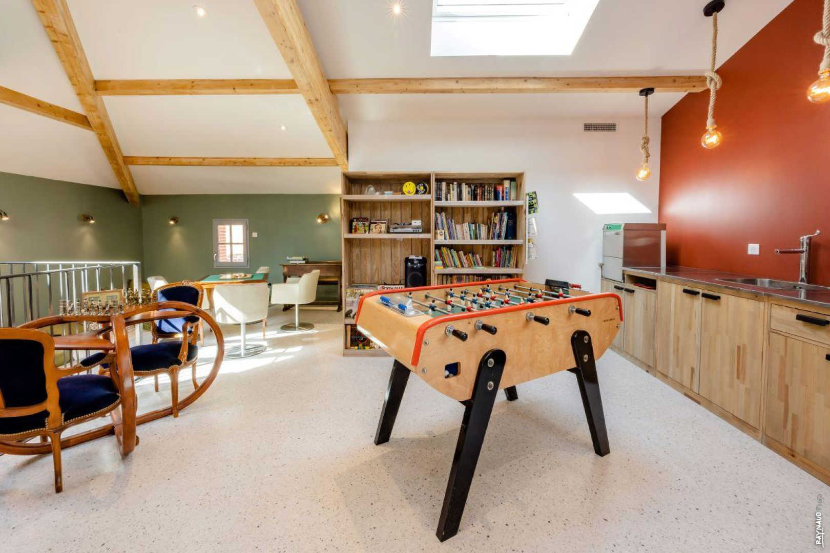 – Au 2e étage, l’espace loisirs et détente : en haut des escaliers, BABYFOOT, échiquier, fléchettes, BILLARD et wc indépendant au second étage avec bar (machine à glaçons, cafetière, évier). Le tout, en écoutant de la musique moderne ou plus ancienne avec les VINYLES mis à disposition.