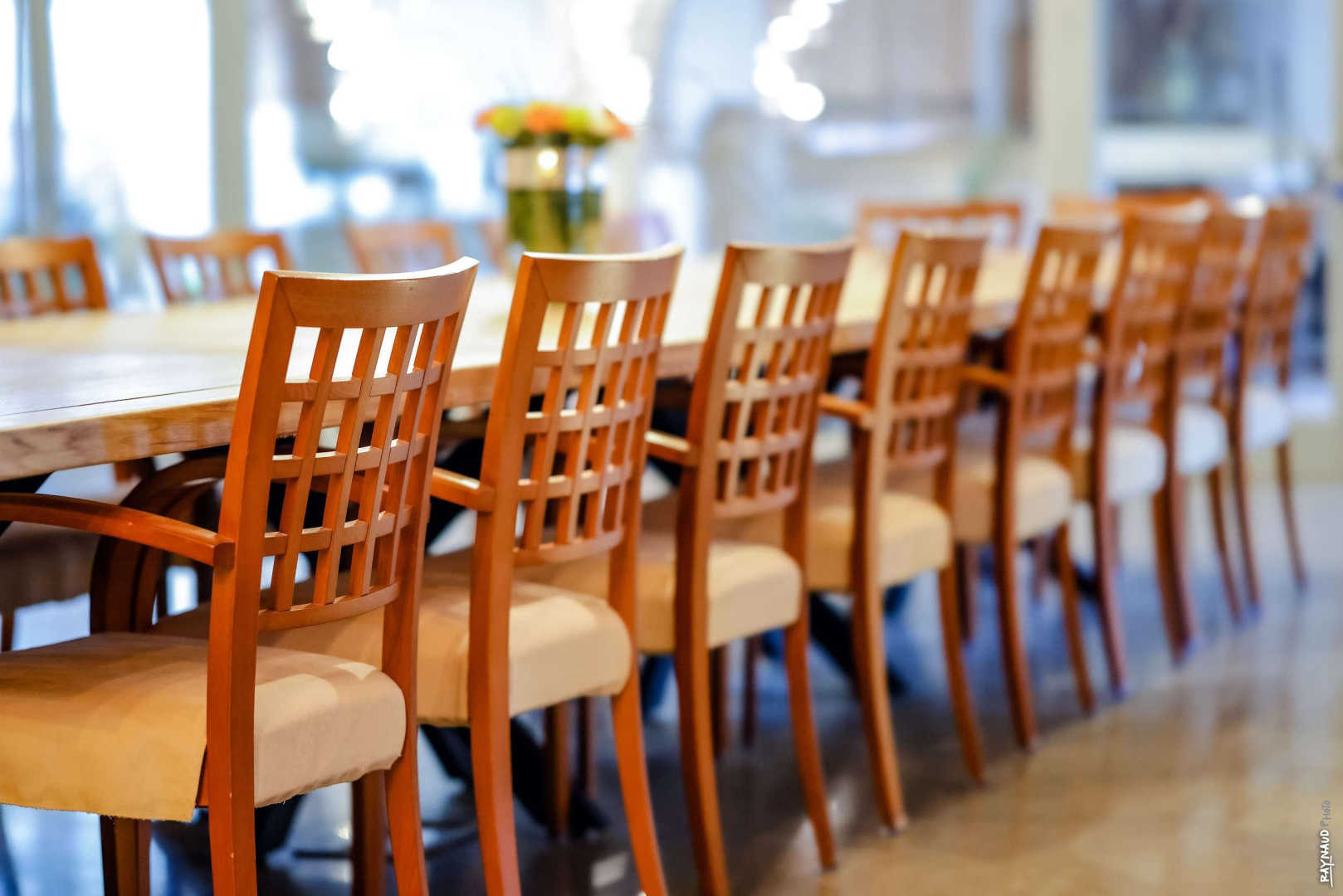 – Au rez-de-chaussée : grand séjour sous les arcades avec espace salon et TV, NETFLIX et CHEMINÉE au coin du canapé face à la baie vitrée. Grande table à manger pour 15 personnes, idéale pour les repas de famille ou entre amis, mais aussi parfait pour des SÉMINAIRES avec vidéoprojecteur et bar tout équipé pour l’accueil de groupes. Wc indépendant en rez-de-chaussée.
