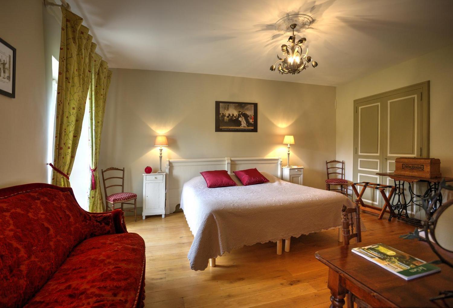A l’étage de la maison des propriétaires, Chambre familiale Fleurs d’Aurore : 1 ch avec 1 lit 180×200 ou deux lits de 90×200 jumelables, salle d’eau / wc et 1 ch avec 1 lit 160×200 salle de bain / wc. Clair de Lune avec 1 lit 160×200 et Harmonie du Soir avec 1 lit 180×200, salle d’eau / wc pour chacune. Dans les tours de la maison, Suites Ballade en rêve et Hymne au Soleil (2 à 4 pers) sur 2 niveaux: chacune accessible par un escalier extérieur: salon (canapé 2 pers de grand confort convertible), salle d’eau / wc, à l’étage: chambre avec 1 lit 160×200. Toutes les chambres sont équipées d’une douche à l’italienne. Toutes décorées de façon différente, les chambres sont orientées plein sud, très lumineuses et offrent toute une vue sur le parc. Grand salon / salle à manger à disposition des hôtes. Wi-Fi disponible dans les chambres et toute la maison. Terrasse et jardin.