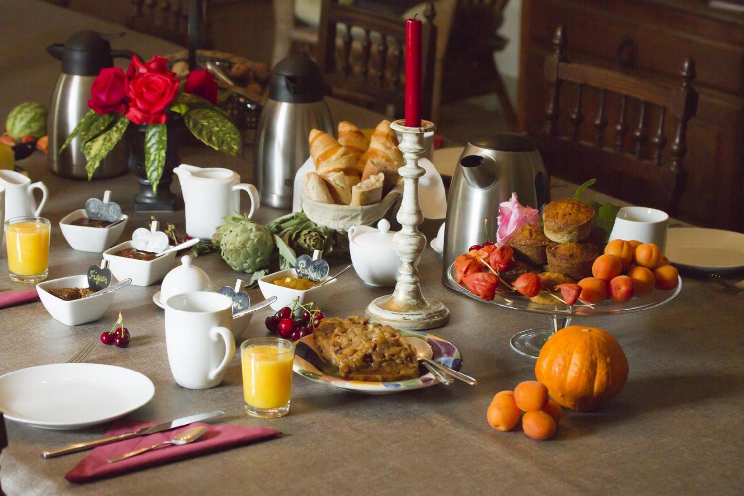 Petit-déjeuner continental avec viennoiserie, pâtisserie et confitures maison. Hélène gersoise d’origine, grâce aux différents circuits qu’elles proposent après le petit-déjeuner, vous fera découvrir les trésors du Gers.