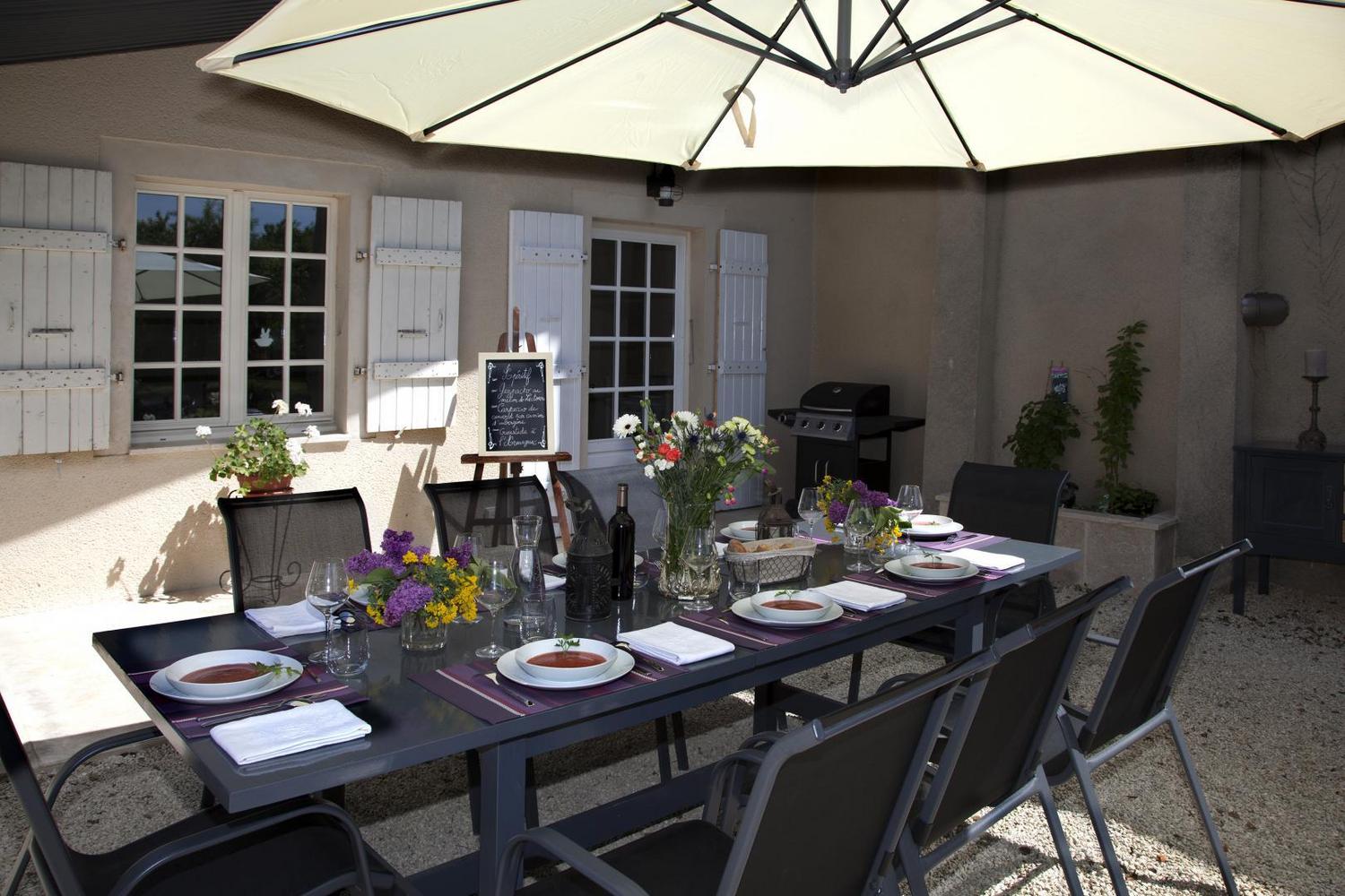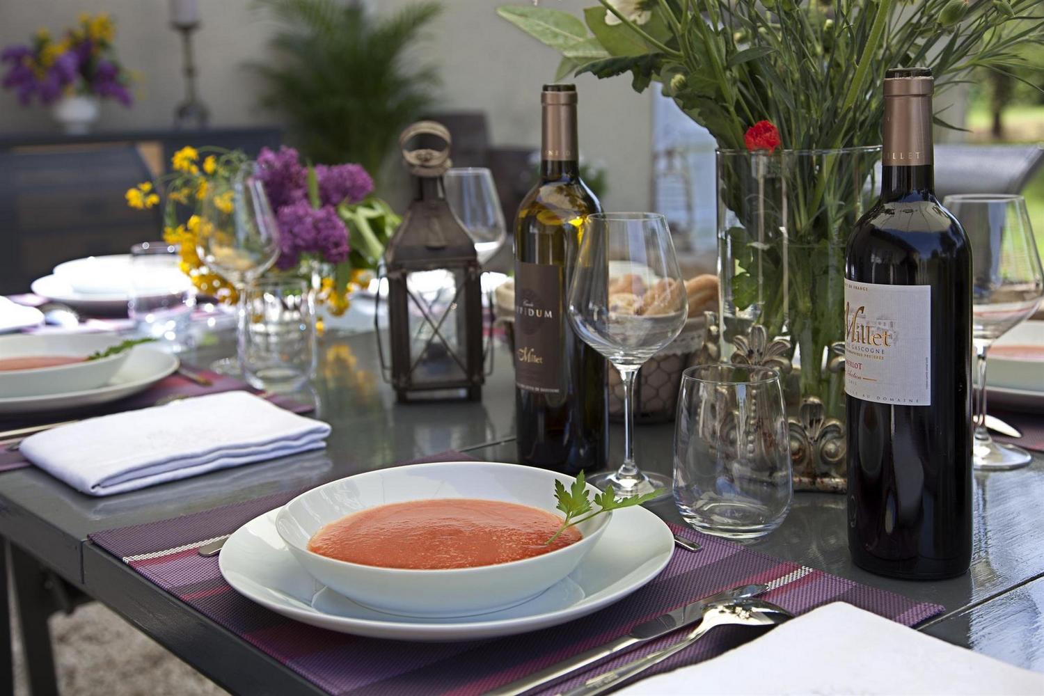 Vous pourrez aussi profiter d’une Table d’hôtes avec des produits et des vins locaux préparés par la propriétaire, fille d’un vigneron du Gers bien connu. Table d’hôtes sur réservation. Minimum 8 personnes. Parking gratuit sur place.