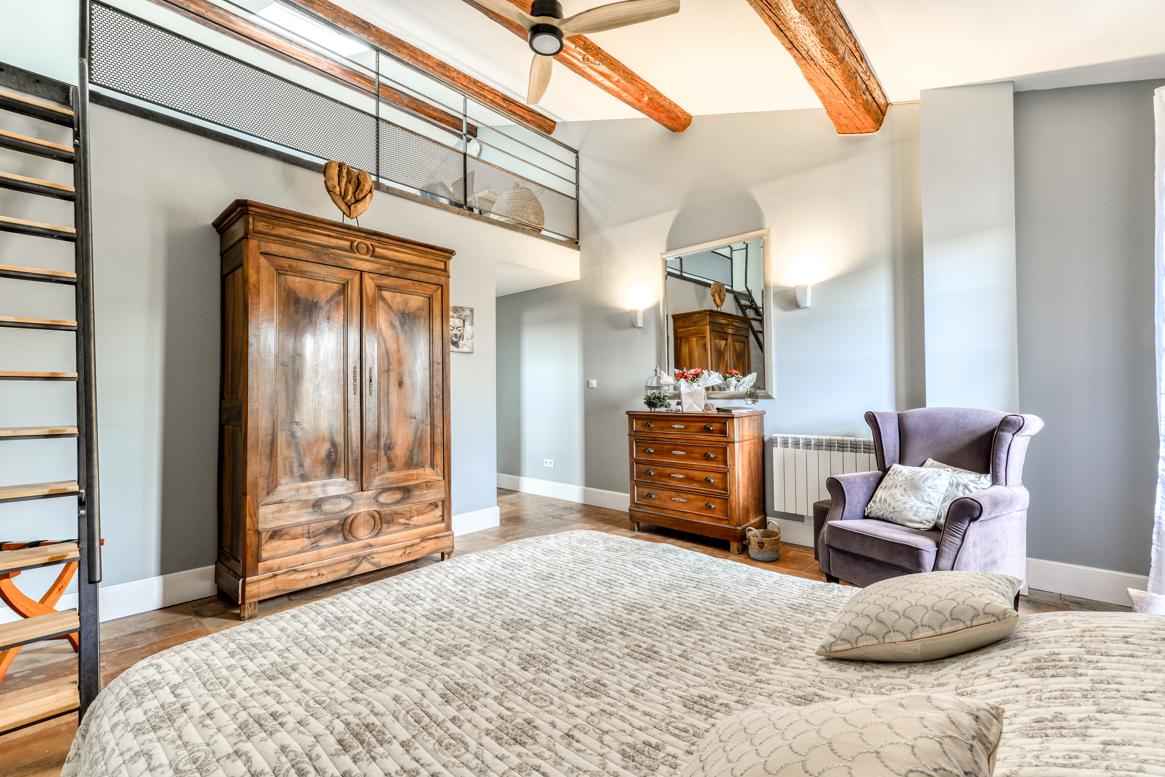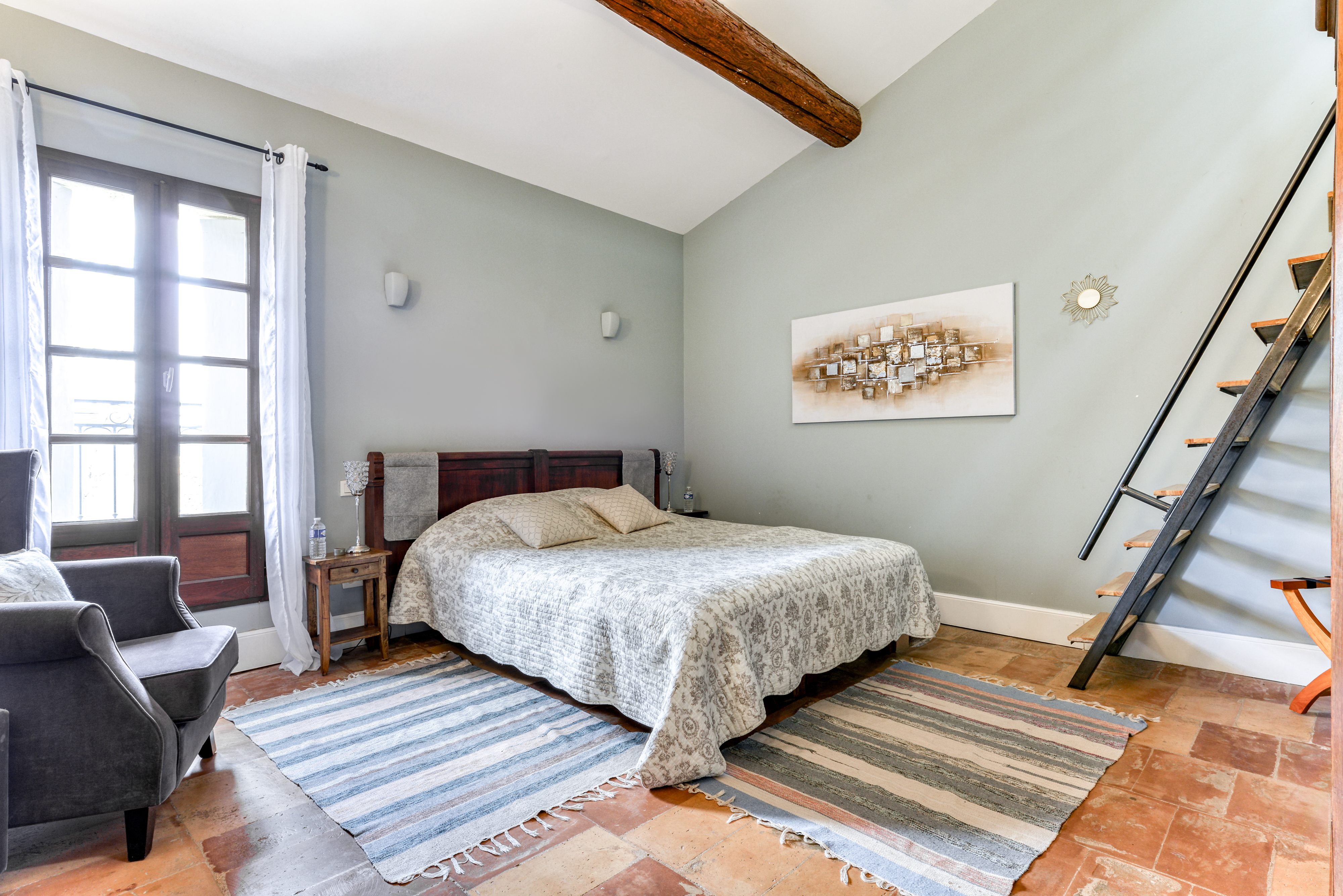 La Maison Dix welcomes you in the heart of the Hérault, a few kilometres from Pézenas, in the small village of Neffiès. Marie and Jean-Philippe open their doors to you with a lot of conviviality, authenticity and simplicity in their winegrower’s house composed of 4 rooms and a gîte. Ideal place to visit the hinterland, its many hikes, discover its relief and its many vineyards, the house Dix will offer you a soothing environment and conducive to activities. Room located on the 2nd floor of 22 m2 for 2 people. Shower gel and organic products, courtesy tray, swimming pool, loan of bicycles, ping-pong, bowling pitch.