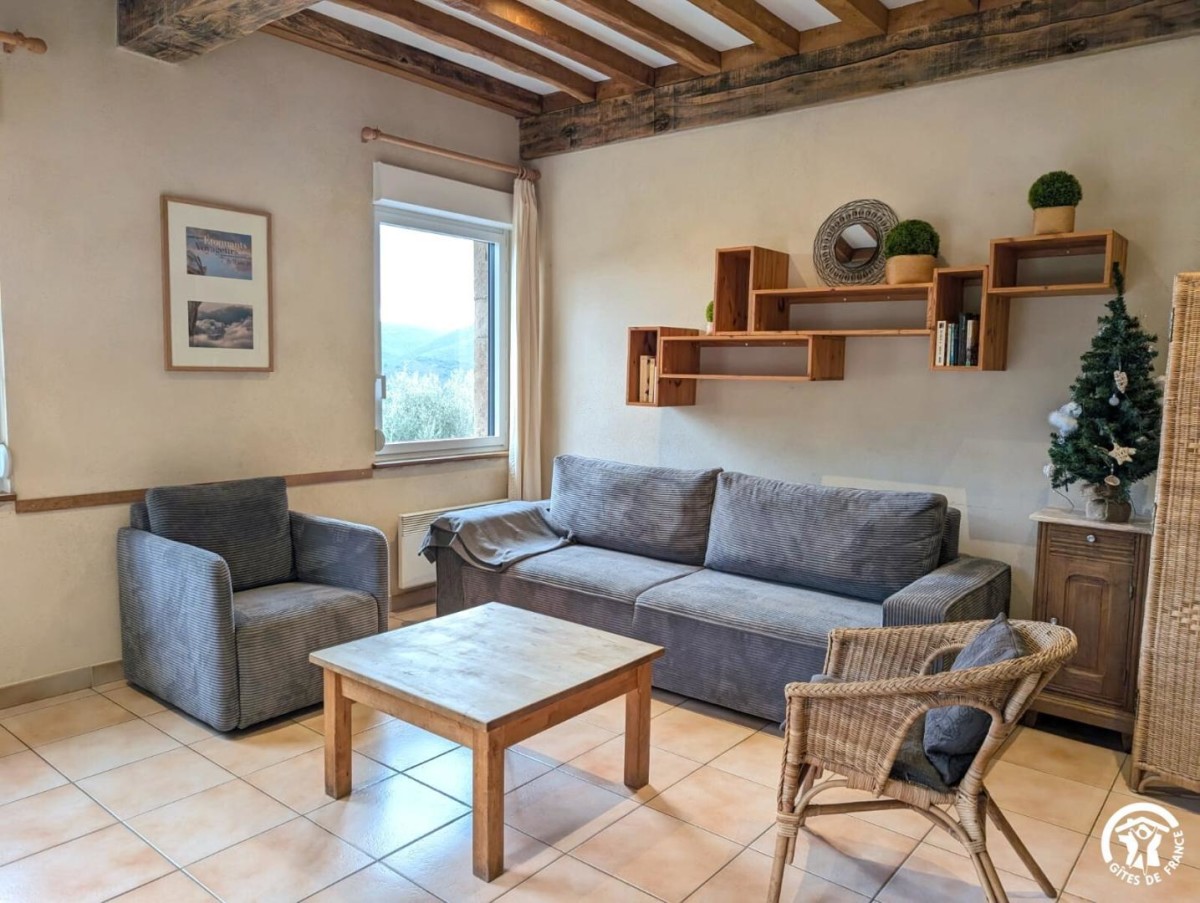 Near the Espinouse mountain and the Caroux massif in a natural environment of woods, overlooking the valley, 3 km from Olargues classified ‘village of France’, independent country stone house . Ground floor: living room/kitchen area 1st floor: 1 room. (2 single beds), toilet, TV., electric heating, beds made up, cleaning at the end of the stay, possibility to rent towels. Terrace (11m²), garden furniture, barbecue, commun fenced swimming pool (14×7 m), (opening at the beginning of June/end of September), parking at 50 m. 2 other gîtes on the estate. Surface area : 41 m². TOURIST ATTRACTIONS : Haut-Languedoc Regional Nature Park, massif of Caroux and the Espinouse Mountains. On the spot hiking GR 7 at 3 km, concerts at the Priory of St Julien, orchards (cherry trees), vineyards, Olargues, classified village. Gorges d’Héric, mountain biking, canoeing, canyoning, Roquebrun, Vieussan, lakes (Laouzas, Raviège, Saut de Vésolles), in October, chestnut festival in St Pons de Thomières