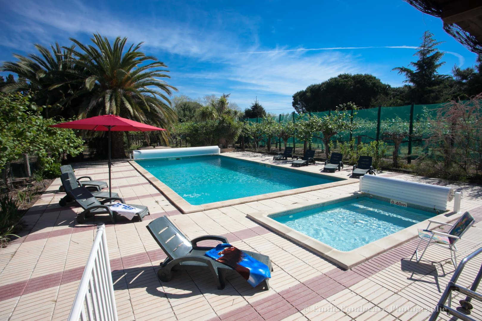 Nature lovers will appreciate the many walks available in the surrounding area, while the beaches of Saint-Cyprien and Argelès-sur-Mer offer moments of relaxation by the sea. You can also sample the delights of Catalan cuisine at the local markets, vineyards and numerous restaurants in the area. Mas Couloumine comprises four adjoining gîtes, each with its own entrance and private terrace: Ground floor: -Living room – Kitchen area – Bedroom 1 : 1 bed 160×200 – Bedroom 2: 1 bed 160×200 -2 Shower rooms (walk-in showers) – 2 separate WCs – Private, unenclosed terrace First floor : – Bedroom 3: 2 beds 90×190 – Bedroom 4 : 2 beds 90×190 – 2 separate toilets Access to the Domaine’s communal heated swimming pool: dimensions = 6 x 12 m; depth 1.4 to 2 m, secured by a barrier and roller shutter. Pool: 2 x 3.50 m; 0.40 m deep. Open from May to the end of October from 9am to 8pm. Shared sauna.