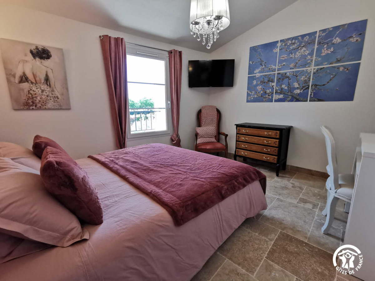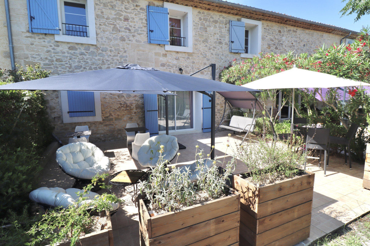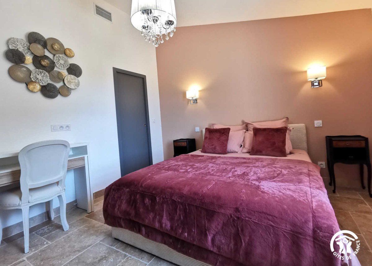 Entièrement rénové, ce mas vigneron offre un cadre enchanteur avec des installations haut de gamme telles qu’un jacuzzi, une grande piscine commune avec ses terrasses en pleine nature, des aires de jeux, et bien plus encore. Imprégnez-vous de l’atmosphère unique du Mas de Cadoule, entouré d’un parc majestueux, de vastes espaces verts avec ses vergers sur près de 4 hectares. L’architecture préservée et la cour intérieure paysagée ajoutent une touche d’histoire à ce havre de modernité. Découvrez la dernière nouveauté du domaine, les trois chambres d’hôtes qui vous accueillent dans l’ancien pressoir du Mas. Aménagée avec élégance chacune des trois chambres d’hôtes est soigneusement décorée pour refléter une personnalité distincte. À l’image des gîtes, chaque chambre est dédiée à une femme marquante de l’histoire du Mas : Claire, Madeleine et France. Ouvertes depuis juillet 2023, ces chambres offrent aux visiteurs un espace à la fois spacieux et paisible. Chacune est pourvue d’une salle de bain privée et de tout le confort moderne, incluant la climatisation réversible, un lit king size de qualité hôtelière, une colonne de douche, une télévision écran plat, un accès Wifi, un bureau, … Pour débuter la journée, un petit déjeuner copieux et gourmand est proposé principalement avec des produits locaux et bio. Il est servi le matin dans la salle à manger commune dédiée aux hôtes au RDC, ou par beau temps, sur l’une de nos terrasses offrant une vue pittoresque sur le parc intérieur ou les vastes espaces verts et arborés. Profitez des nombreux services : Parcourez les 4 hectares de parcs, jardins et vergers ; Garez votre véhicule dans le parking ombragé et sécurisé avec portail automatique ; Protégez vos motos et vélos dans l’espace couvert dédié ; Organisez des moments conviviaux avec le barbecue ; Détendez-vous au bord de la piscine de 19X5 mètres (ouverte de 11h jusqu’au coucher du soleil de mai à septembre) ; Amusez-vous en famille sur une aire de jeux – Chambre double, douche, 1 chambre