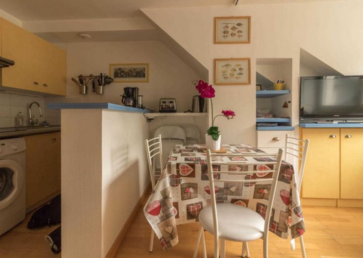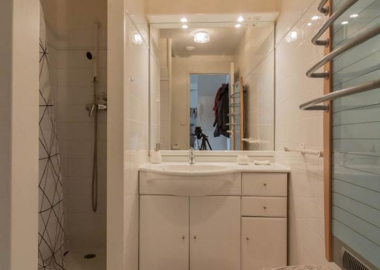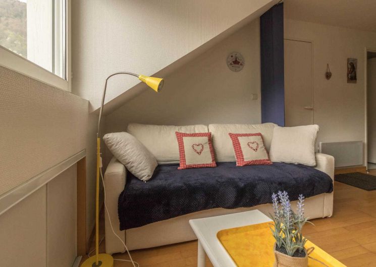 Flat on the 4th floor of the residence, accessible by lift: direct entrance to the living room, small open-plan kitchen, relaxation area with sofa bed. Separate bedroom with sloping ceilings (1 x 140cm double bed), shower room/WC. Electric heating, wifi internet connection. Ground-floor storage room for skis and boots, and possibly 1 or 2 bikes. Ski room. Private parking in the courtyard. Internet
