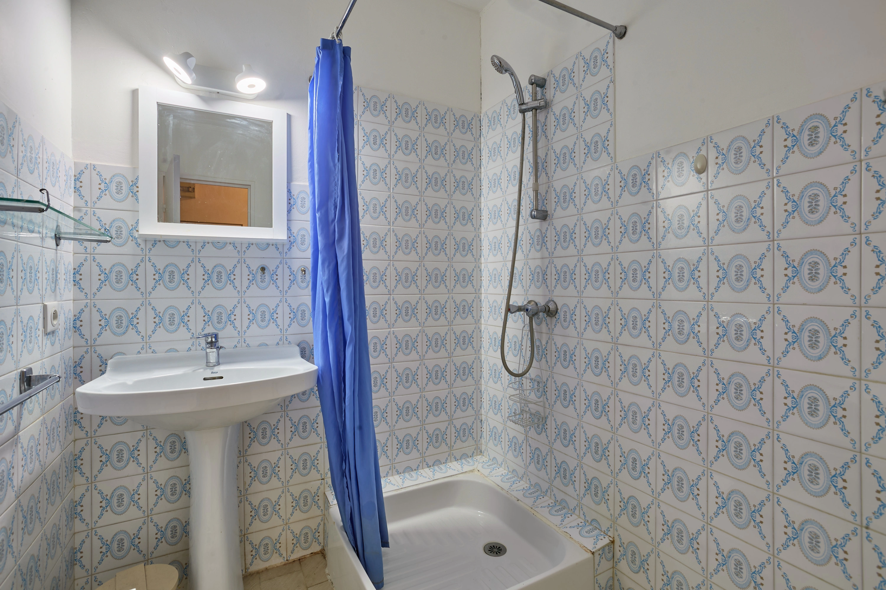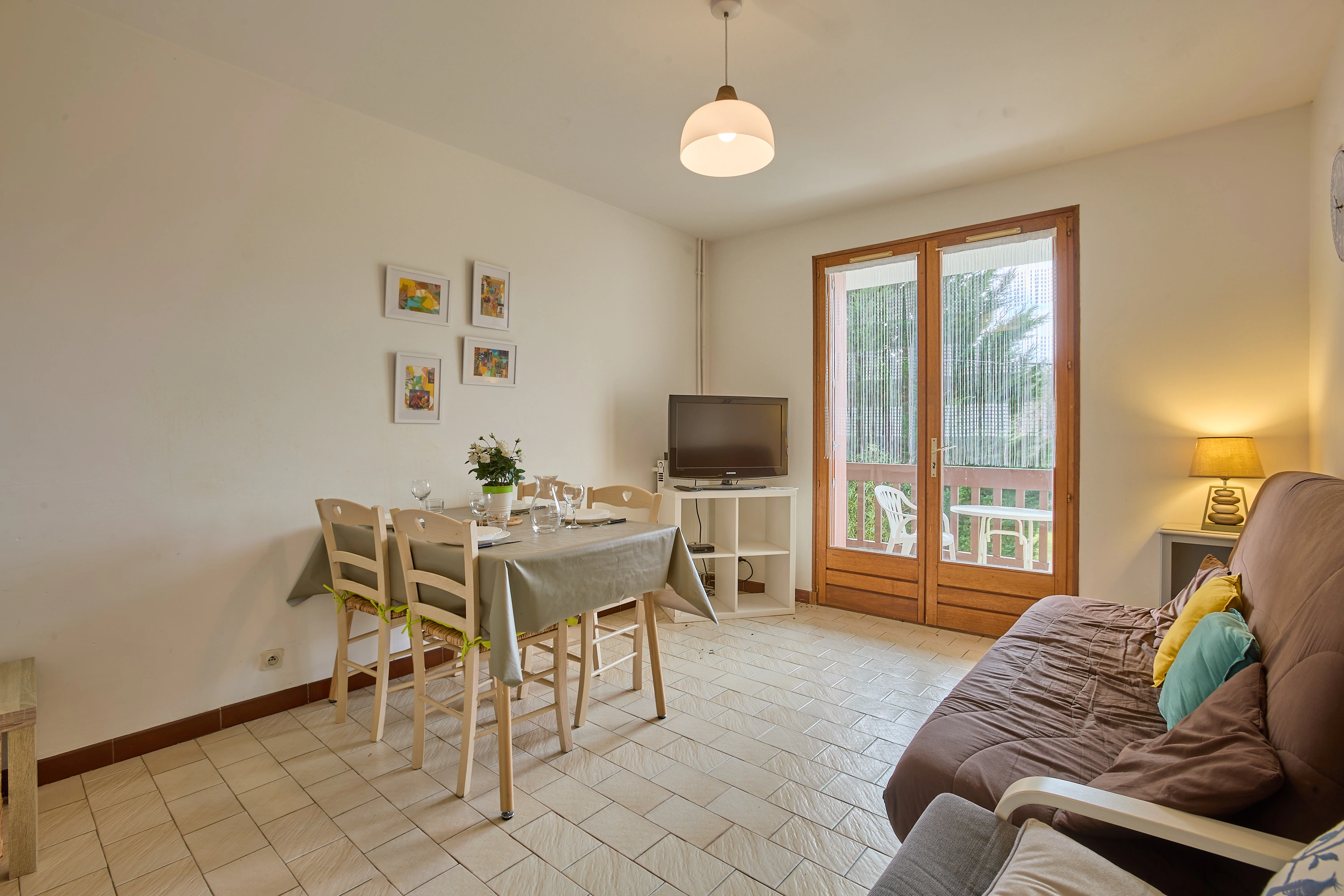 Son séjour de 13m² est aménagé avec un clic-clac et un téléviseur, une salle à manger avec table, quatre chaises et buffet. Ce dernier est éclairé par une porte fenêtre, s’ouvrant sur un balcon exposé au sud, offrant un salon de jardin. Sa cuisine offre une cuisinière électrique avec four et plaques vitrocéramiques, micro-ondes, un grand réfrigérateur, une table et un vaisselier. Sa chambre avec un lit en 140, son placard, et sa porte-fenêtre est lumineuse et spacieuse. Sa salle d’eau offre une douche, un lavabo et un lave-linge. Ses toilettes sont séparées. Chauffage électrique.
