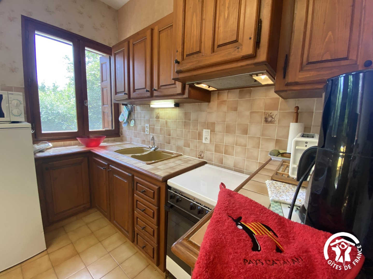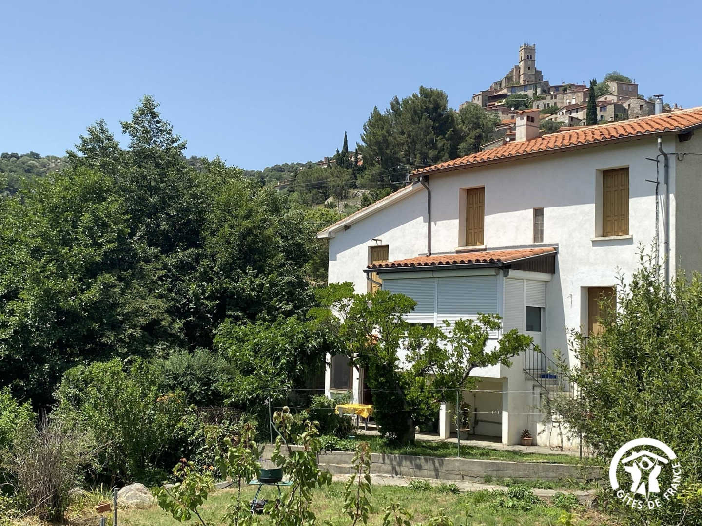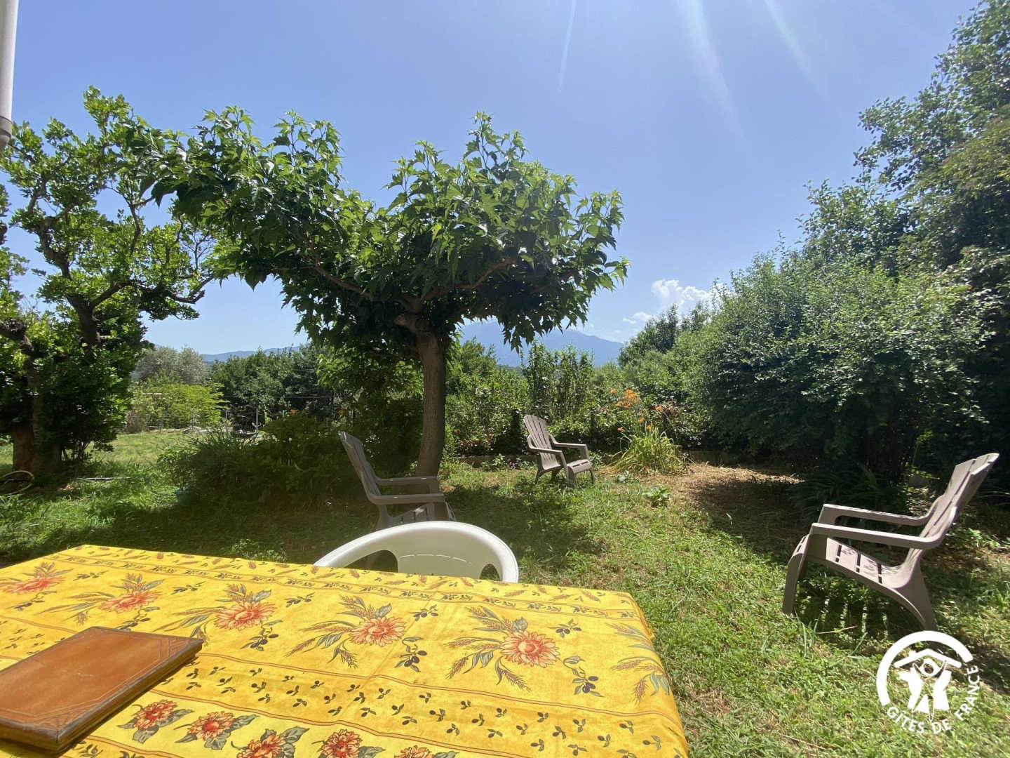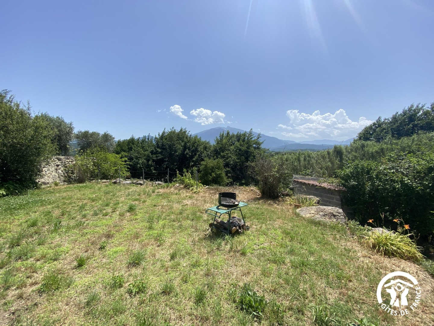 This semi-detached gîte with its rustic charm welcomes you to an exceptional natural setting, between the Mediterranean and the Canigou massif. Nestling in the Conflent region at the foot of the Pyrenees, it offers uninterrupted views of the surrounding mountains and the picturesque village. Nearby, don’t miss a visit to the abbey of Saint-Michel-de-Cuxa, the baths of Vernet-les-Bains or the colourful markets of Prades. The gîte comprises a ground-floor flat. You’ll find a living room with an open-plan kitchen area (sofa). A relaxation area with a single bed (90×190), a bathroom with shower, separate WC and an alcove bedroom with a double bed (140×190) complete this level. Outside, you’ll enjoy a shared garden planted with flowers and trees, with views of the Canigou and the village of Eus. There’s also a shaded terrace where you can enjoy your meals al fresco or simply relax in a peaceful, natural setting.