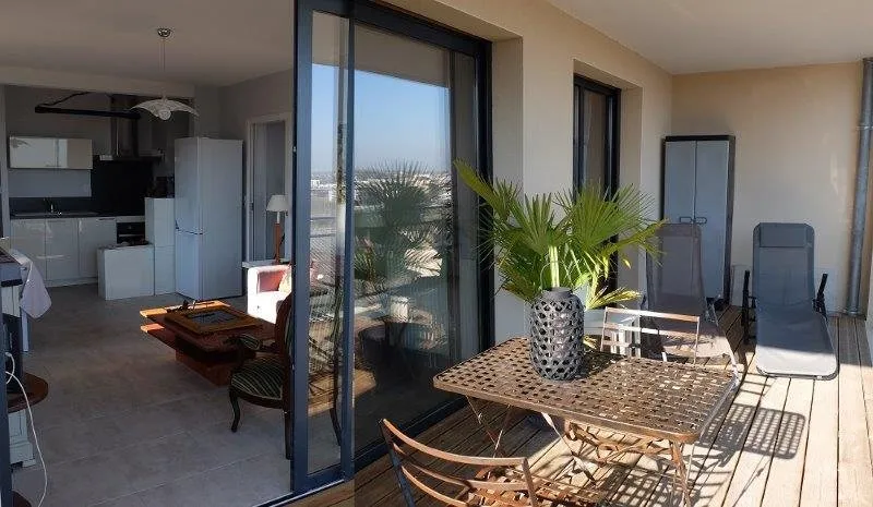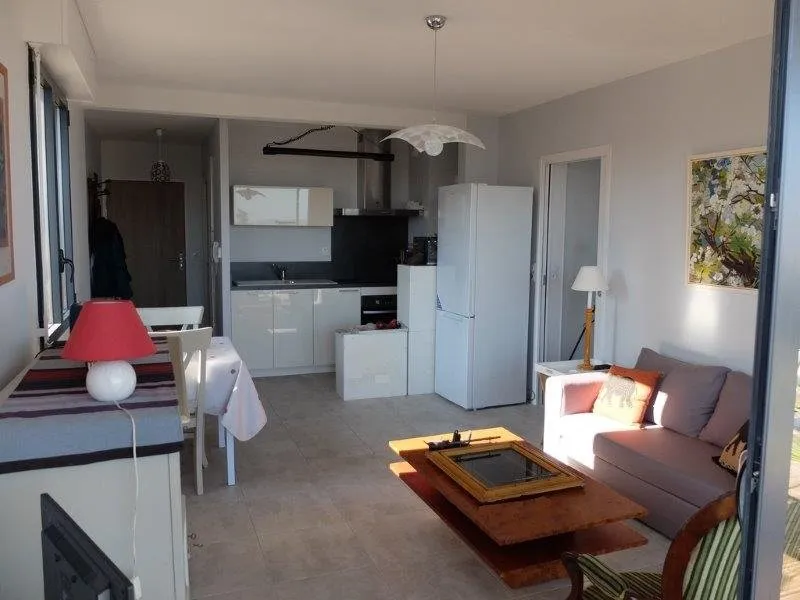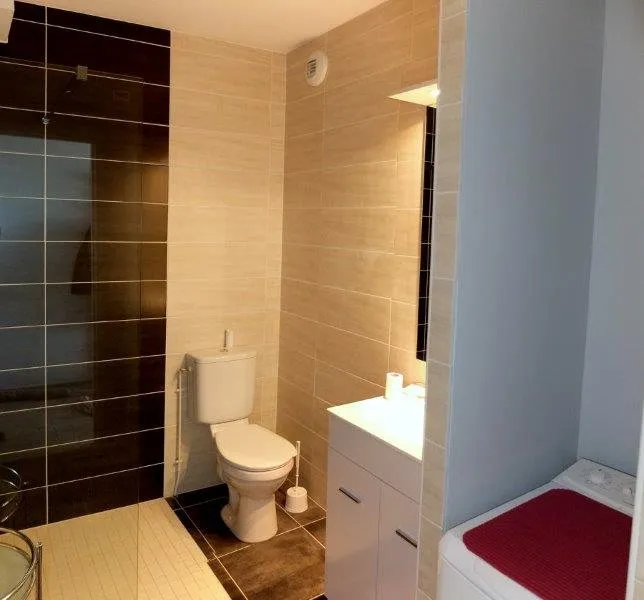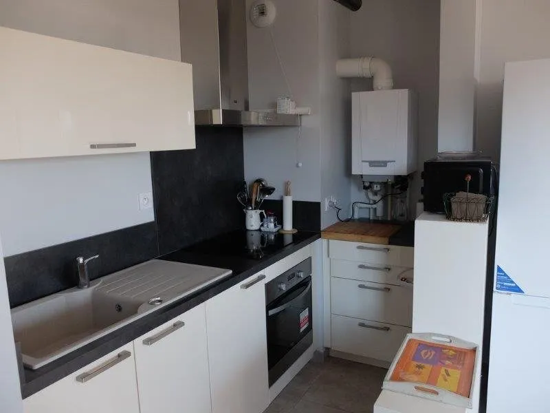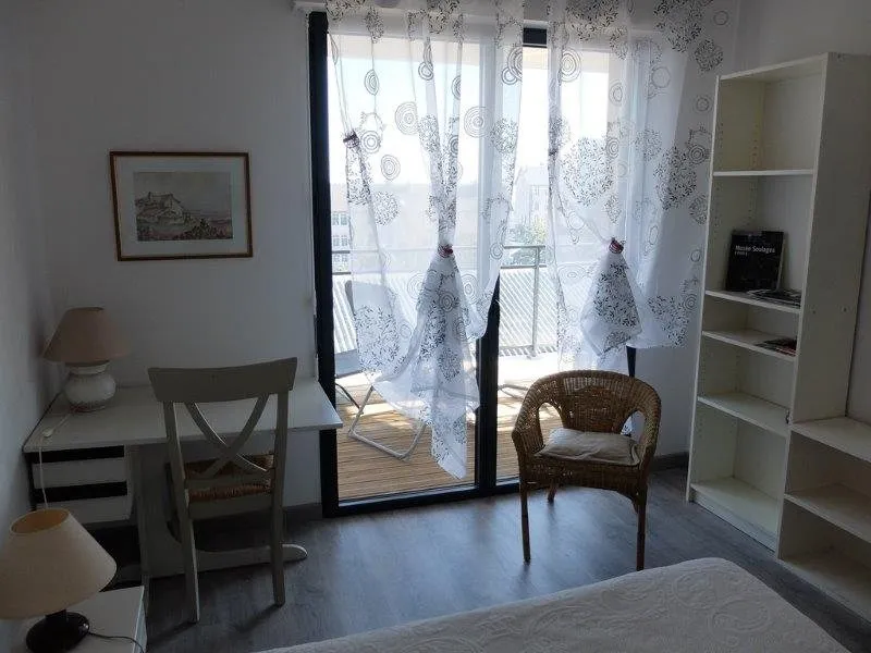 This bright and modern apartment has a 14m2 terrace, a fully equiped kitchen (microwave, coffee machine, toaster, kettle), a bathroom with italian shower and washing machine. Parking in a closed courtyard.