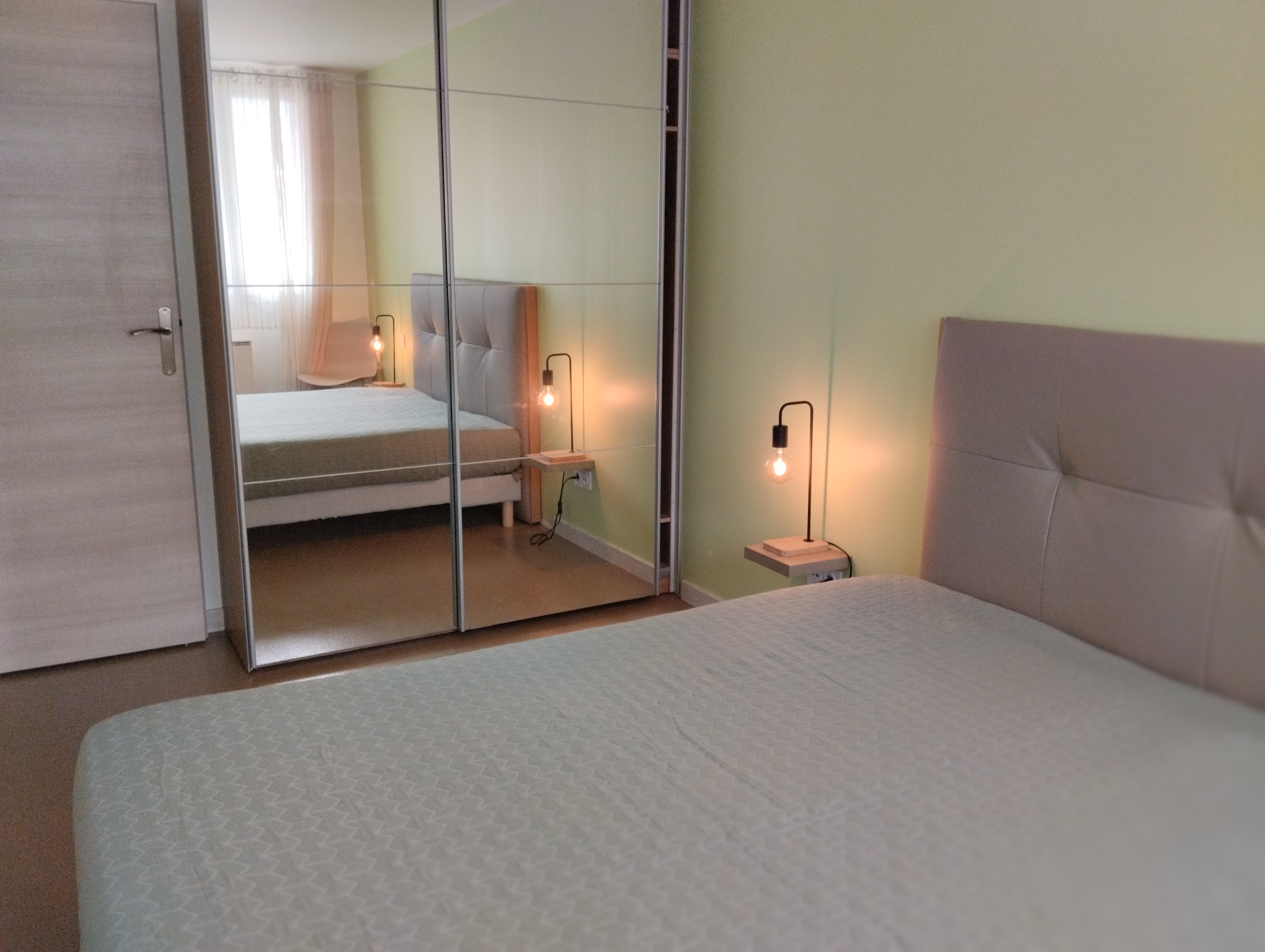 The flat has 3 bedrooms for 6 people: 2 bedrooms with 160 cm double beds (large wardrobes available) and 1 bedroom with 2 90 cm bunk beds equipped with a second television.