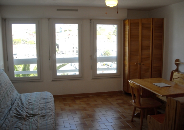 Studio 1 room of 28m². Located on the 4th floor with lift. Comprising a large entrance hall with wardrobe and plenty of storage space, a 140cm sofa bed. View of the port, public car park nearby.