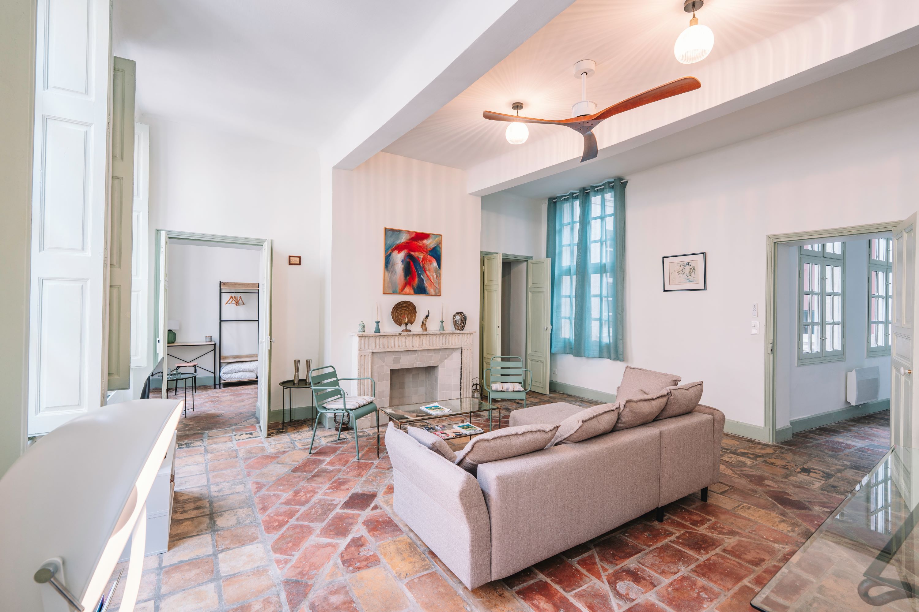 Un Joyau Occitan, appartements de caractère au cœur de Nîmes. Niché au deuxième étage de l’hôtel particulier Fontfroide, il offre confort et charme dans un cadre historique.