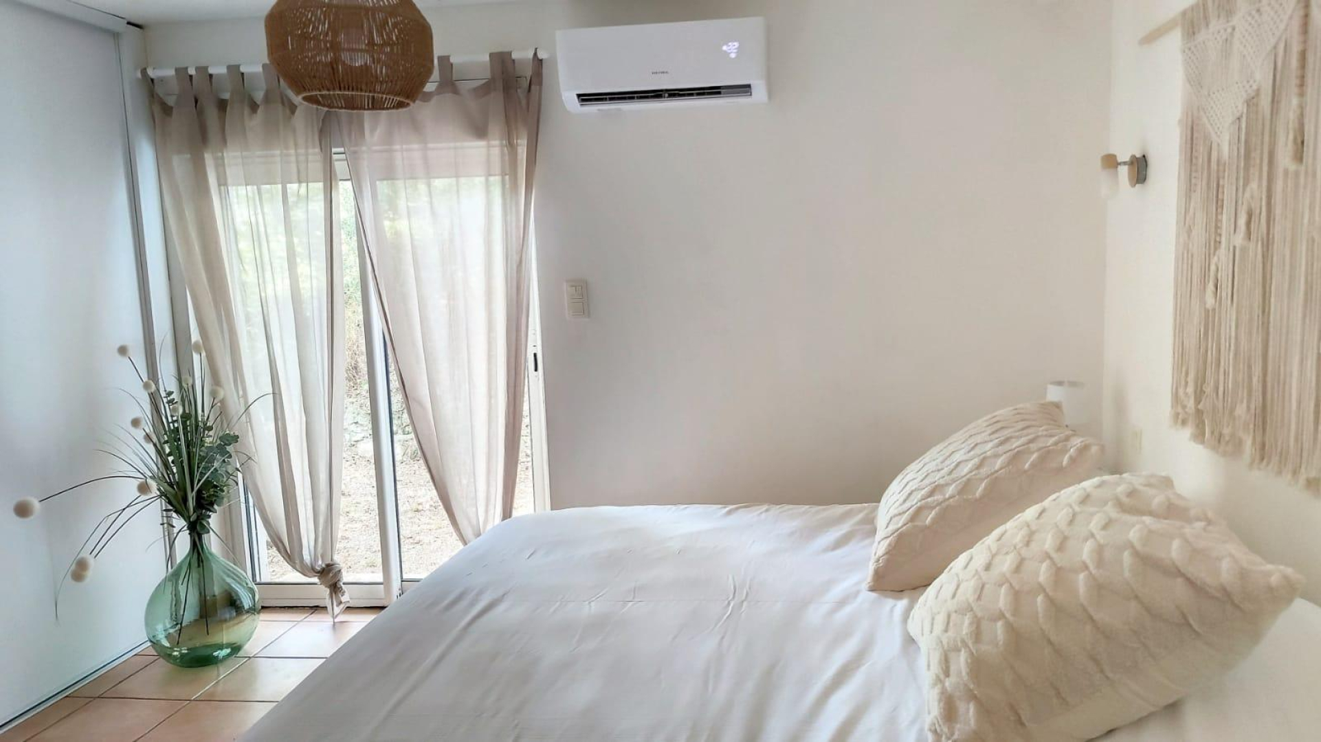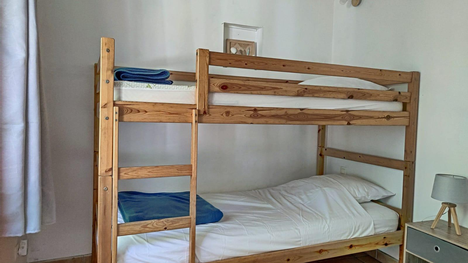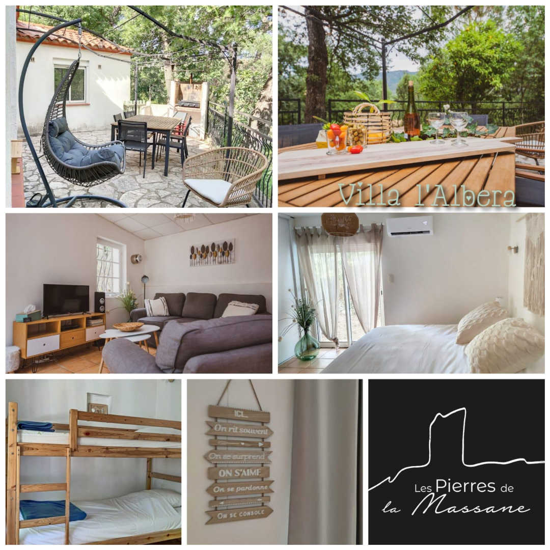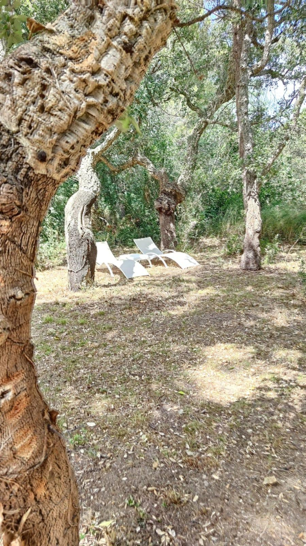 You’ll love the large, unfenced outdoor areas of over 1.5 hectares, planted with cork oaks and olive trees. Studio, flat or villa…., take your pick! Whether you’re with family or friends, this gîte village is waiting for you! You’ll be staying close to nature, yet just a stone’s throw from all the action, beaches and coves! The new EuroVelo8 cycle path passes right in front of the estate. Each gîte has its own private, secure parking space. This pretty single-storey villa has a kitchen and living room, a bedroom (1 x 180cm bed), a second small bedroom (2 x 90cm bunk beds) and a shower room (wc). It opens onto a 55m² terrace with spa and a 70m² private garden. A combined barbecue and grill are available.