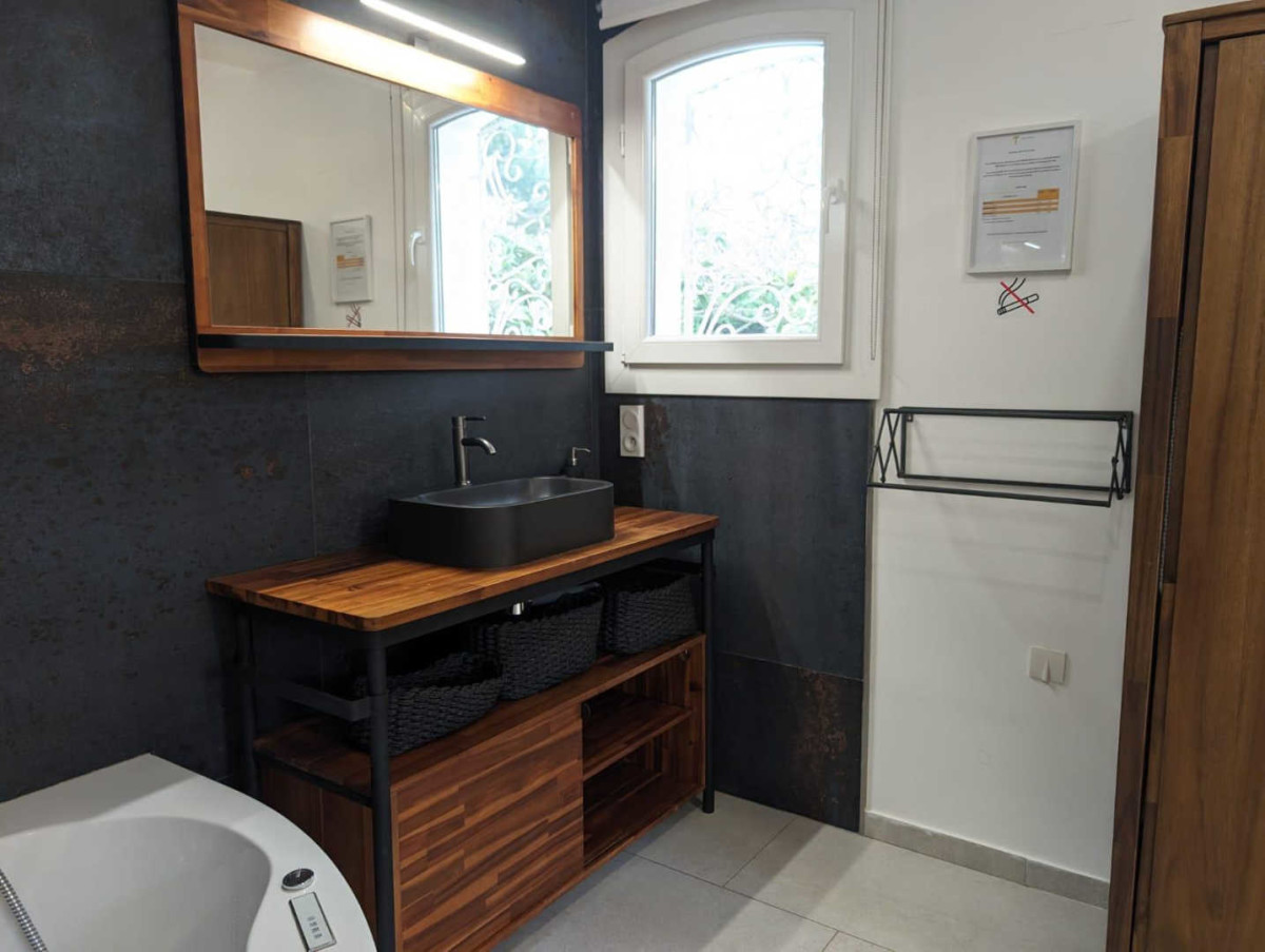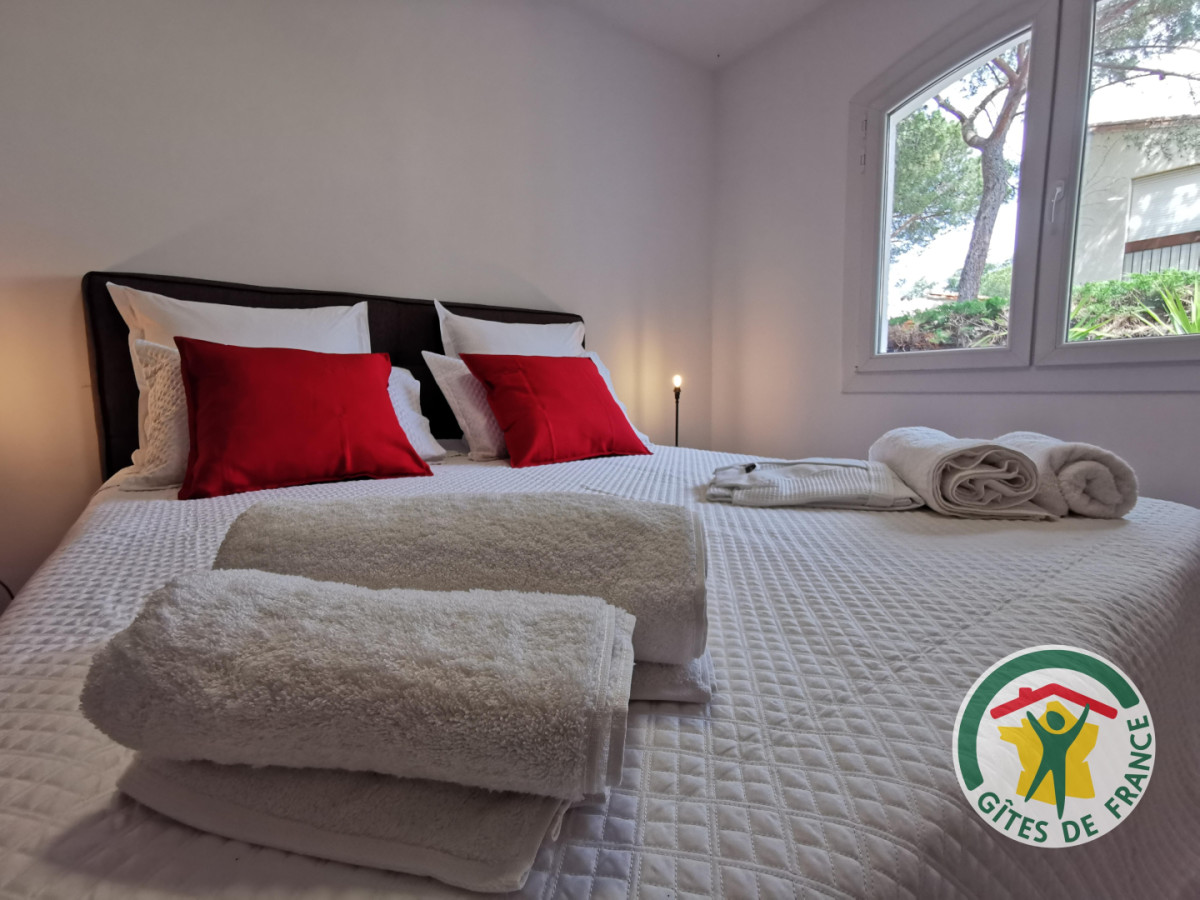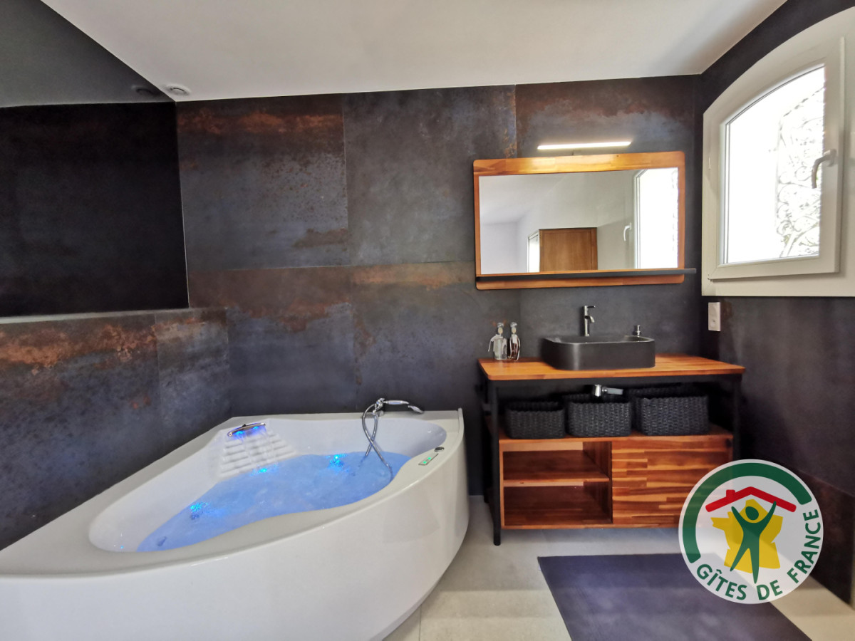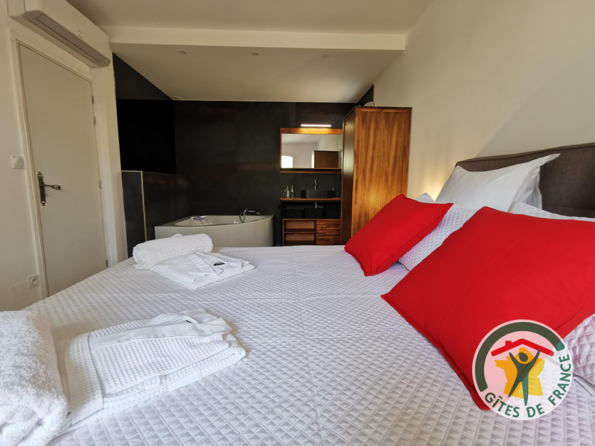Chambres d’hôtes de caractère où vous pourrez séjourner en toute tranquillité. Les 5 chambres sont chacune pour 2 personnes. L’une des chambres (Love Room Baobab) dispose d’un jaccuzzi et d’un sauna privatifs. Profitez d’un moment de détente à la piscine, ou bien dans le jardin aménagé. Vous trouverez tout le confort possible pour une escapade réussie. Idéal pour un séjour en couple. La piscine dispose de transats avec parasol. “Vous avez la possibilité de bronzer avec ou sans traces de maillots au bord de la piscine”. Un terrain de pétanque ainsi qu’une table de massage sont à votre disposition. Les propriétaires peuvent vous donner les contact de masseurs professionnels. Vous pourrez également découvrir l’art et l’artisanat malgache dans la boutique de madame. ATTRAITS TOURISTIQUES : Cap d’Agde, Marseillan, Sète, l’étang de Thau (parcs ostréicoles), Béziers, Pézenas, Canal du Midi, sports nautiques, plages. – Lieu d’amour, voluptueux et secret : chambre de 19m² avec lit 160×200. Climatisation réversible. Salle de bain avec baignoire balnéo, toilettes privatifs indépendants de la salle de bain.