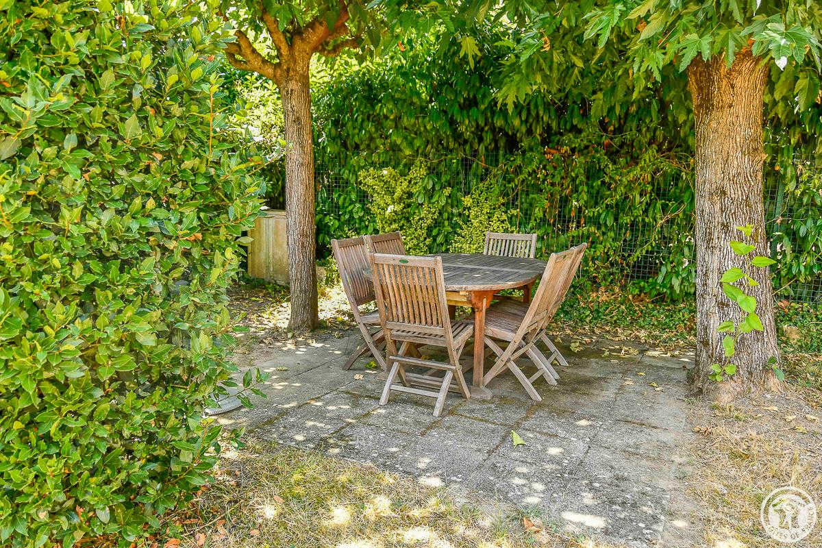 Detached holiday home with private enclosed garden planted with trees and terraces for eating in the shade, on the Via Garona hiking trail (route de Saint-Jacques-de-Compostelle), 46km south-west of Toulouse.