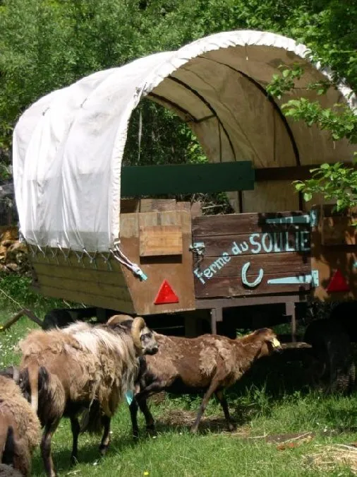 Farm campsite close to Villeneuve also offering accommodation in a gypsy caravan or a shepherd’s little house. Hire of ponies, horses and gypsy caravans for rides.
