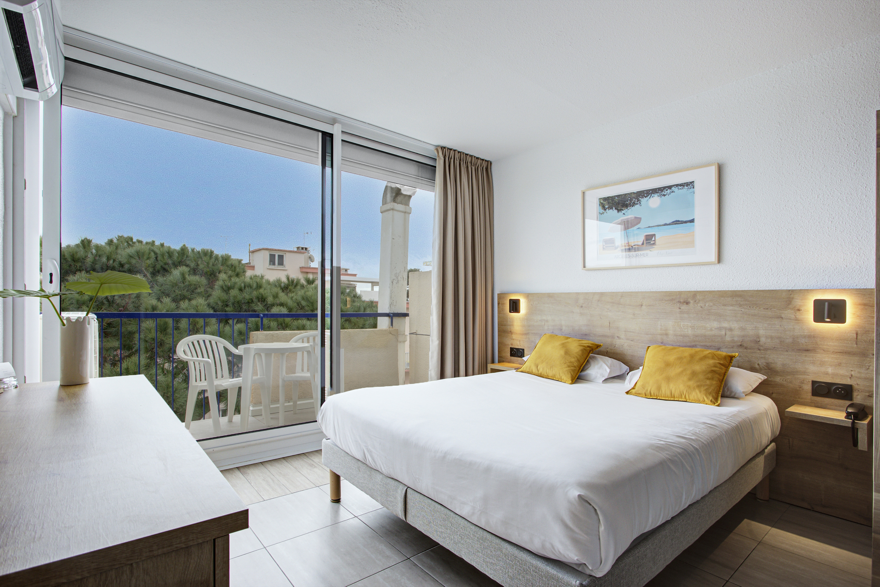 Are you coming to Argelès-sur-Mer for a holiday, a weekend or a business trip? With your family, as a couple, with friends or on your own? On a whim or in an organised way? For a relaxing or hyperactive getaway? Welcome to the Hôtel Centre Plage! We’re located in the lively Argelès-Plage district, at the gateway to all the shops, so you can go shopping or enjoy a drink on the terrace, 100 metres from the central beach and opposite a video-surveilled car park to make it easier for you to get around by car. Just 2 kilometres away, you’ll find the marina, with its maritime atmosphere and Mediterranean-style restaurants.
