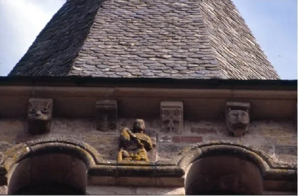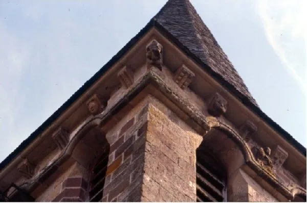 Les corbeaux du clocher et les modillons, sous la toiture, sculptés dans la pierre, rappellent ceux de l’église romane d’Estables.
