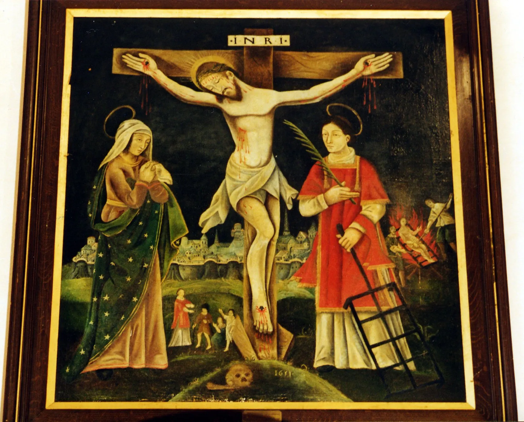 Elle renferme un tableau de 1651 représentant la crucifixion, un retable du XVIIIème siècle (une Vierge donnant le Rosaire à Saint Dominique et à Sainte Claire) et une Pietà du XVème siècle.