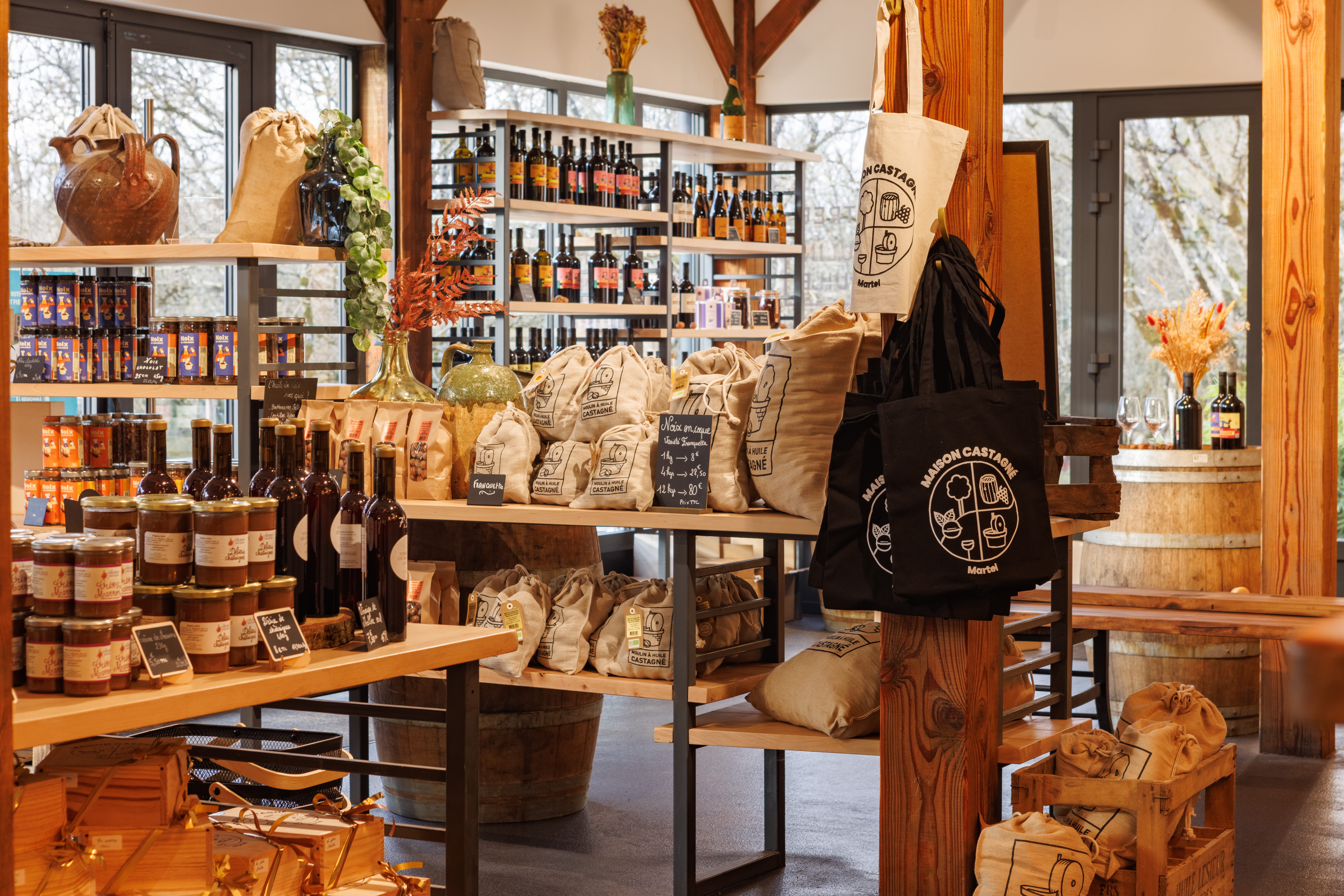 This walnut oil mill is run by the Castagné family, walnut producers and oil makers who master their product from the tree to the bottle. This traditional and century-old mill offers visits and tasting. A stone millstone grinds the kernels, a frying pan heats them and a hydraulic press expresses the walnut oil. Several high quality oils, walnuts and kernels as well as various by-products are sold on site.This walnut-oil mill is worked by the Castagné family, who are farmers and walnut-producers. This former hunting lodge has become a walnut-oil mill which functions all year round and demonstrations of milling are provided for visitors. A millstone crushes the kernels and a hydraulic press extracts the walnut oil. On sale in the farm shop: walnut oil and delicious hazelnut oil, plus the traditional “walnut wine” aperitif (vin de noix) from Quercy.