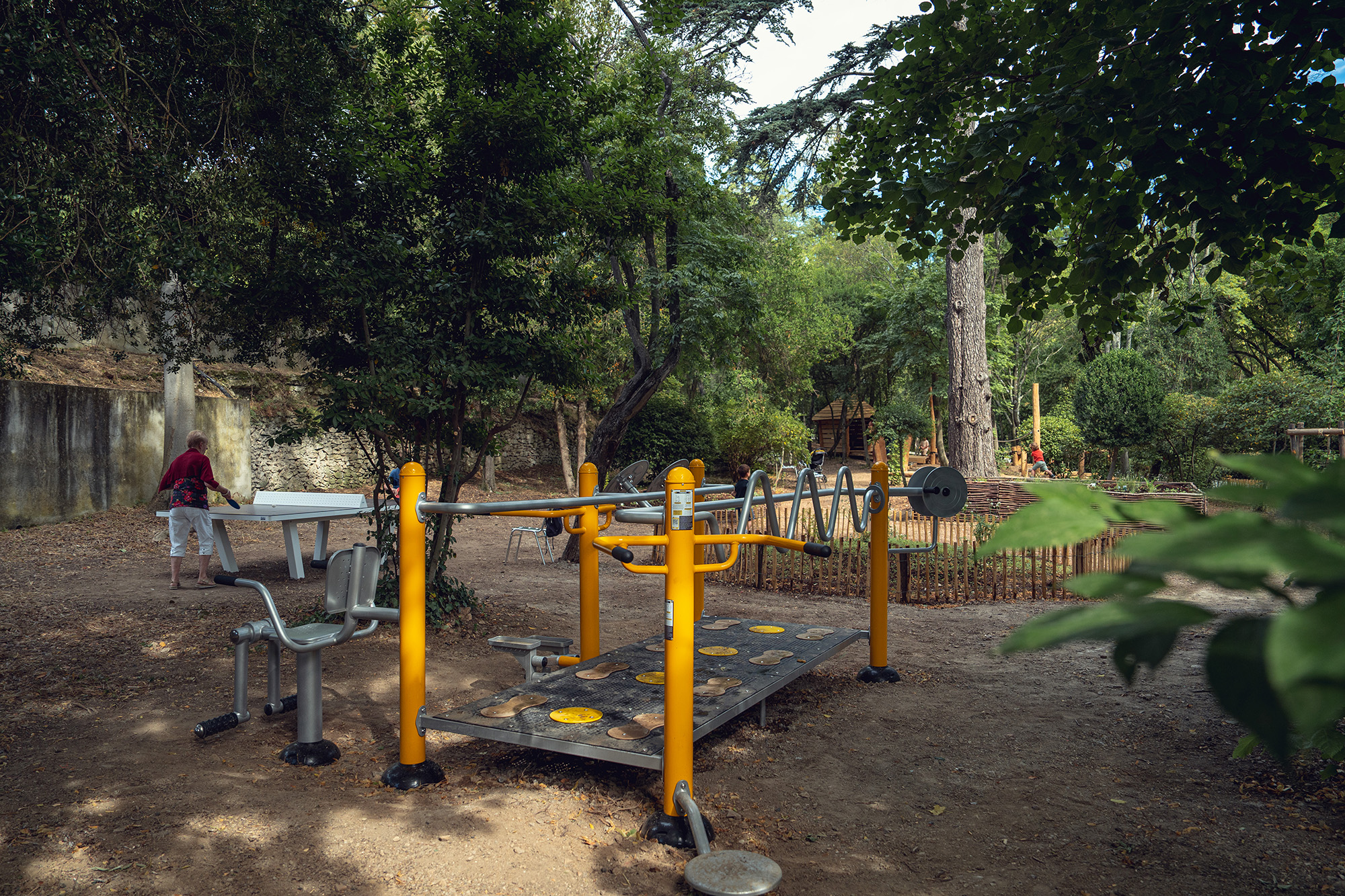 Côté sport et mobilité, des espaces de jeux intergénérationnels sont proposés. L’espace de remise en forme ou « agrès de motricité », sa cabane et son trampoline feront le bonheur des petits comme des grands, tout comme la table de ping-pong et le terrain de jeu de boules, plus haut dans le parc.