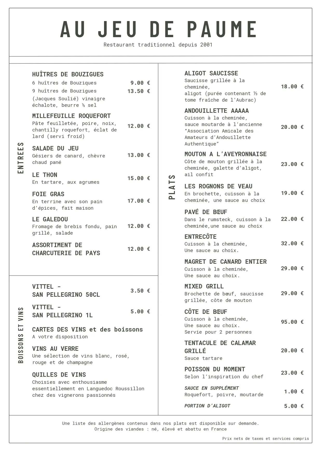 Restaurant traditionnel et authentique situé au cœur du vieux Millau. Spécialités de viandes grillées à la cheminée. Découvrez notre patio en été et dégustez une de nos nombreuses références de vin sélectionnée principalement en Languedoc-Roussillon.