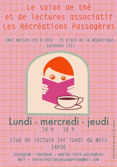 Le salon de thé et de lectures est ouvert aux mêmes horaires toute la semaine.