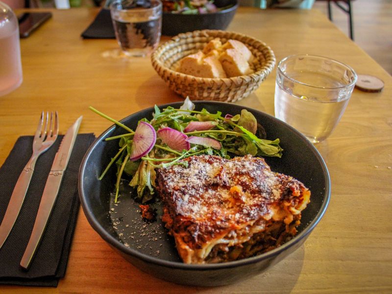The chef’s dishes can be eaten in or taken away.