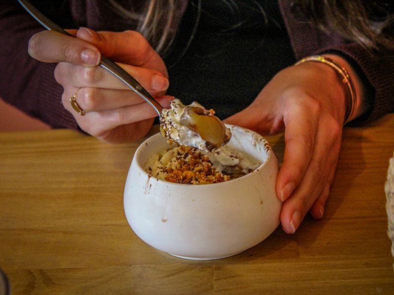 Inside the restaurant, you’ll find two dining rooms: one spacious and bright with plenty of tables, the other more intimate with side tables.