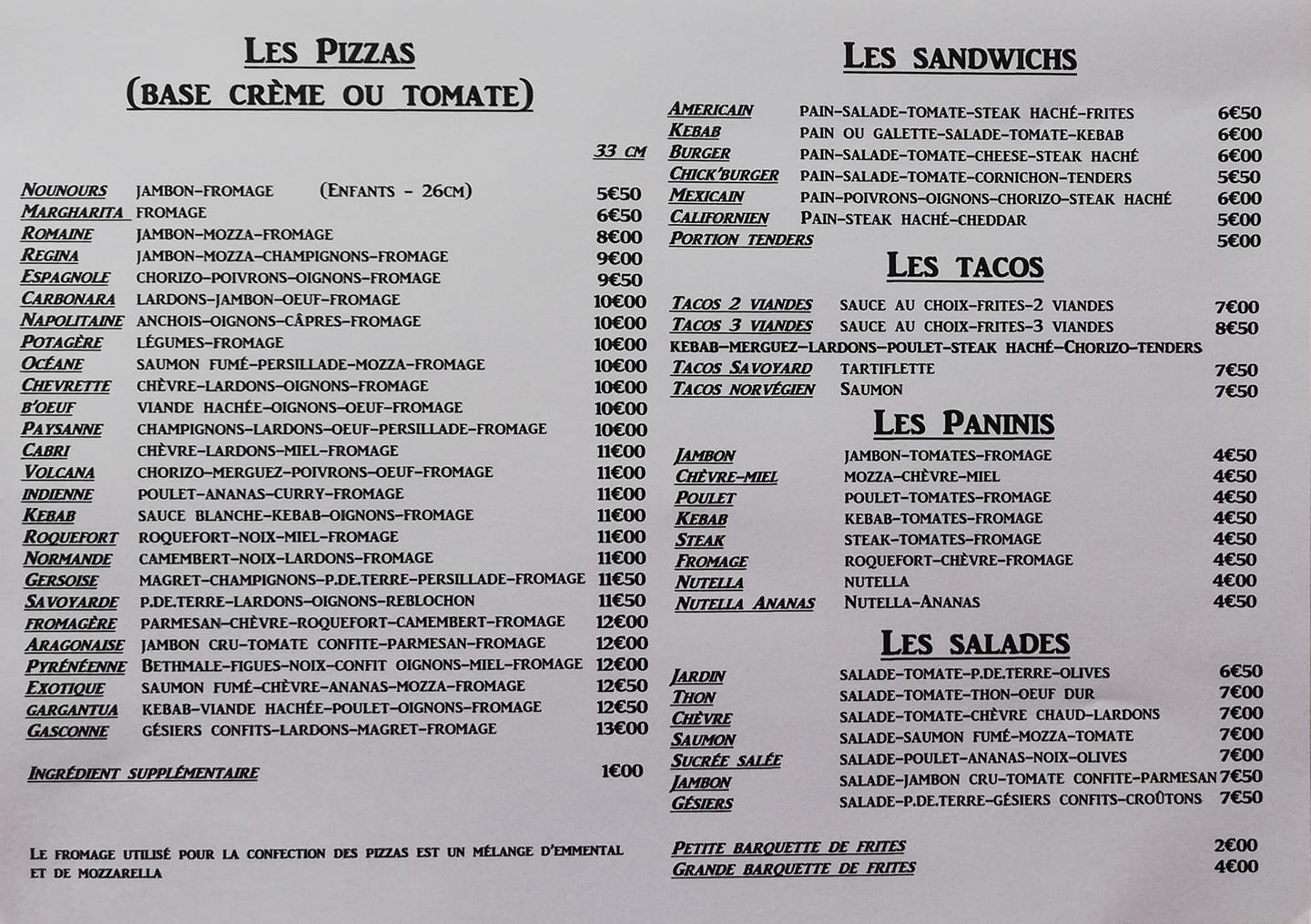 Pizza, tacos, sandwichs, kebab, …. à emporter