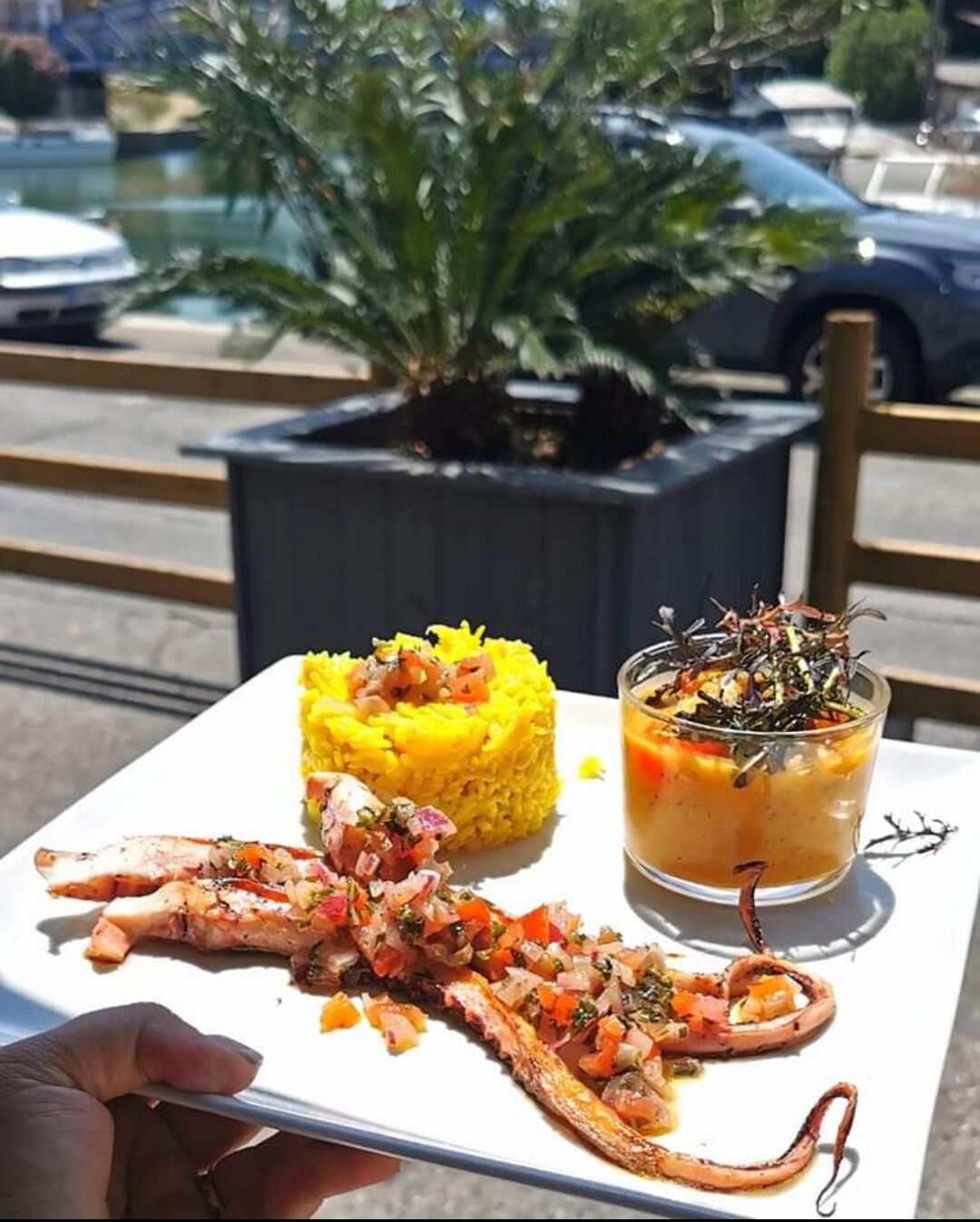 In the heart of the port of Beaucaire, the restaurant’s beautiful sunny terrace invites you to relax while admiring the port, treating both your eyes and your taste buds.
