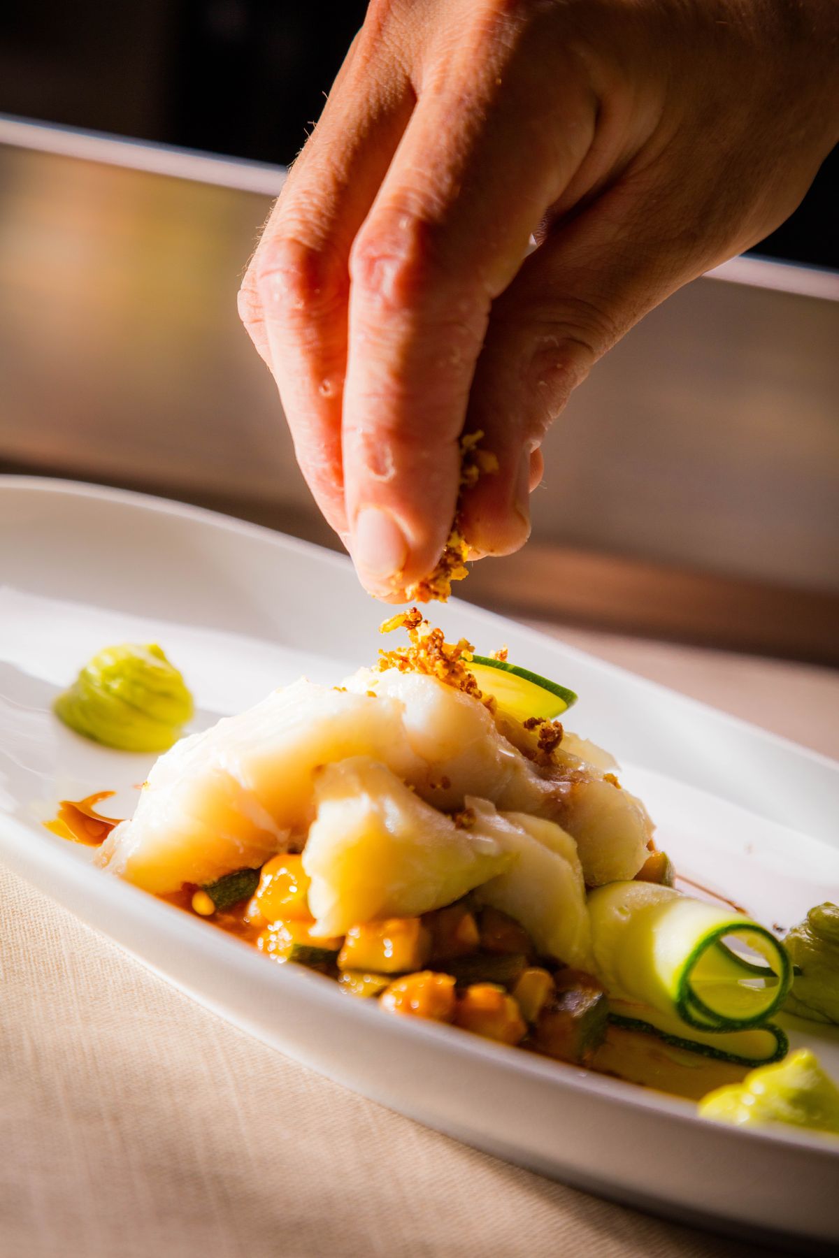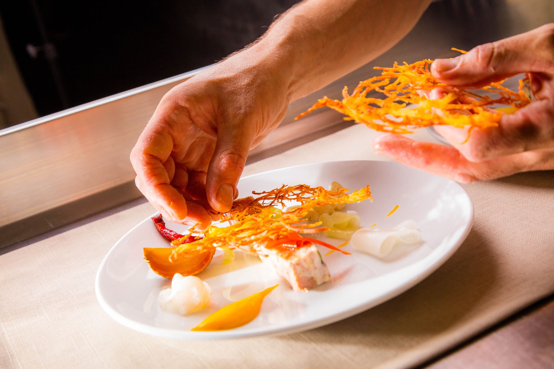“La Maison” is a convivial space that makes you want to share a moment with friends. In winter, you can enjoy the cosy warmth of the fireplace, and as soon as the sun comes out, you can lunch or dine on the enclosed terrace adjoining the restaurant.