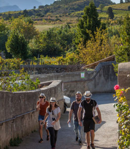 1 h 2 from Perpignan. Stop: Place St Pierre. Nestled in a leafy haven full of vineyards between the sea and mountains, this Mediterranean village has two rivers running through it between the southern Corbières peaks.