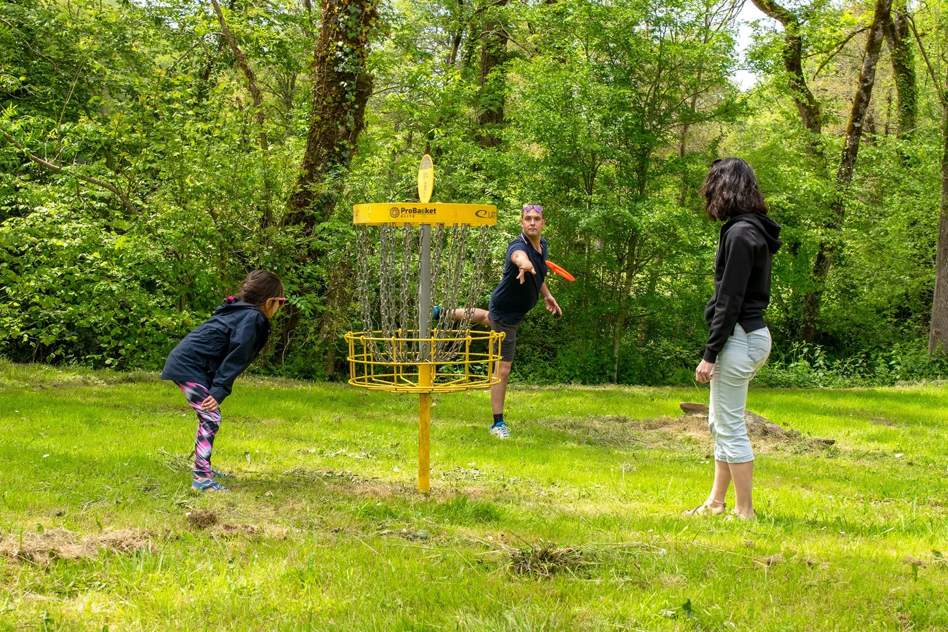 … or how to play golf with a frisbee or a ball. Whether you are an expert or a beginner, this activity is open to everyone, in the heart of La Gazonne Leisure Area down below Sauveterre-de-Rouergue.