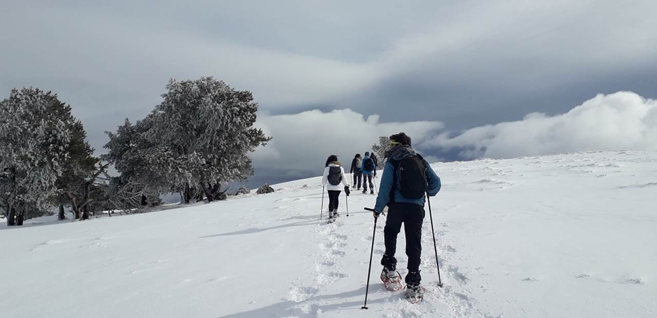 Un paseo con raquetas de nieve para descansar y descubrir la majestuosidad de nuestras montañas nevadas.