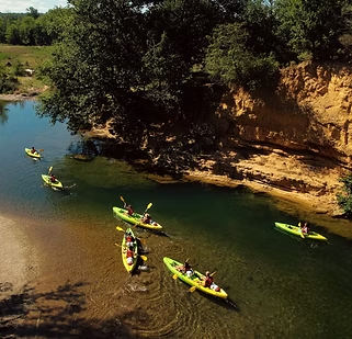 Descubrirá un bucólico río de aguas translúcidas. Los árboles ofrecen a veces una agradable sombra. Podrá ver libélulas, garzas, martines pescadores y muchas otras especies. La corriente le llevará hasta la meta, pero le proporcionaremos remos…