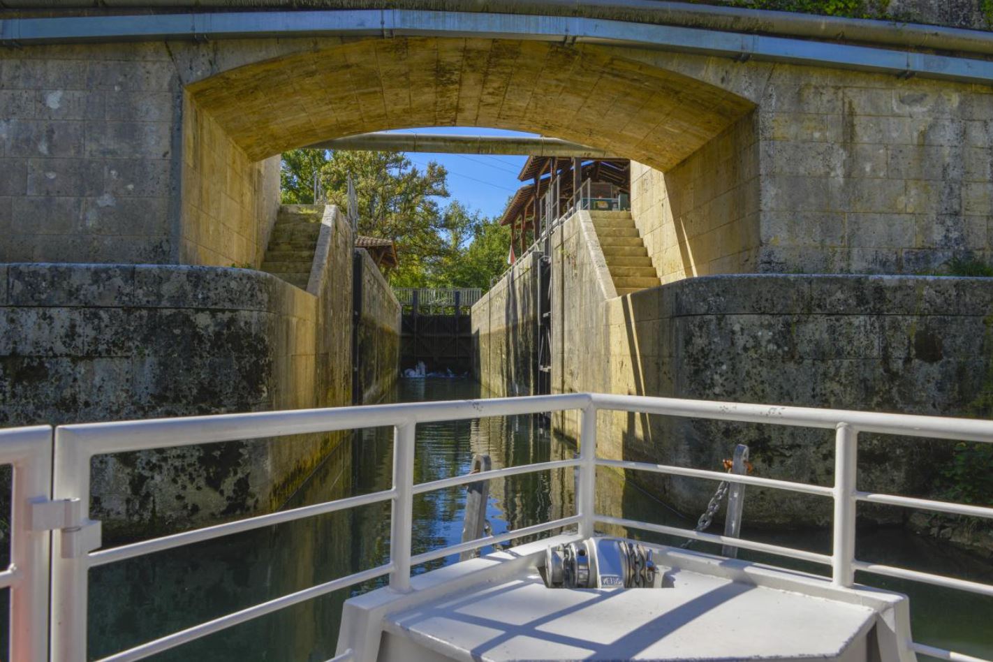 Vous passerez une écluse, répétant la tradition des gabarres chargées de céréales, vins et autres marchandises de l’ancien temps.