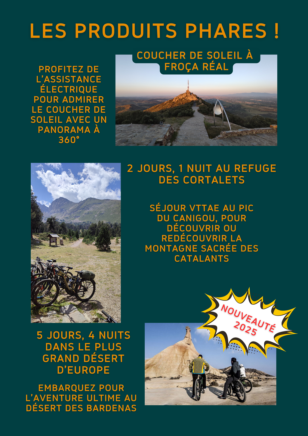 Embárcate en una aventura VTTAE (Vélo Tout Terrain à Assistance Electrique) por algunos de los senderos más bellos de los Pirineos Orientales. Descubrirá panoramas impresionantes. Tanto si busca un relajante paseo histórico como un recorrido más desafiante, Thomas, su guía, se adaptará a su ritmo y a sus deseos. Re Cycle Aventure también alquila y repara bicicletas.