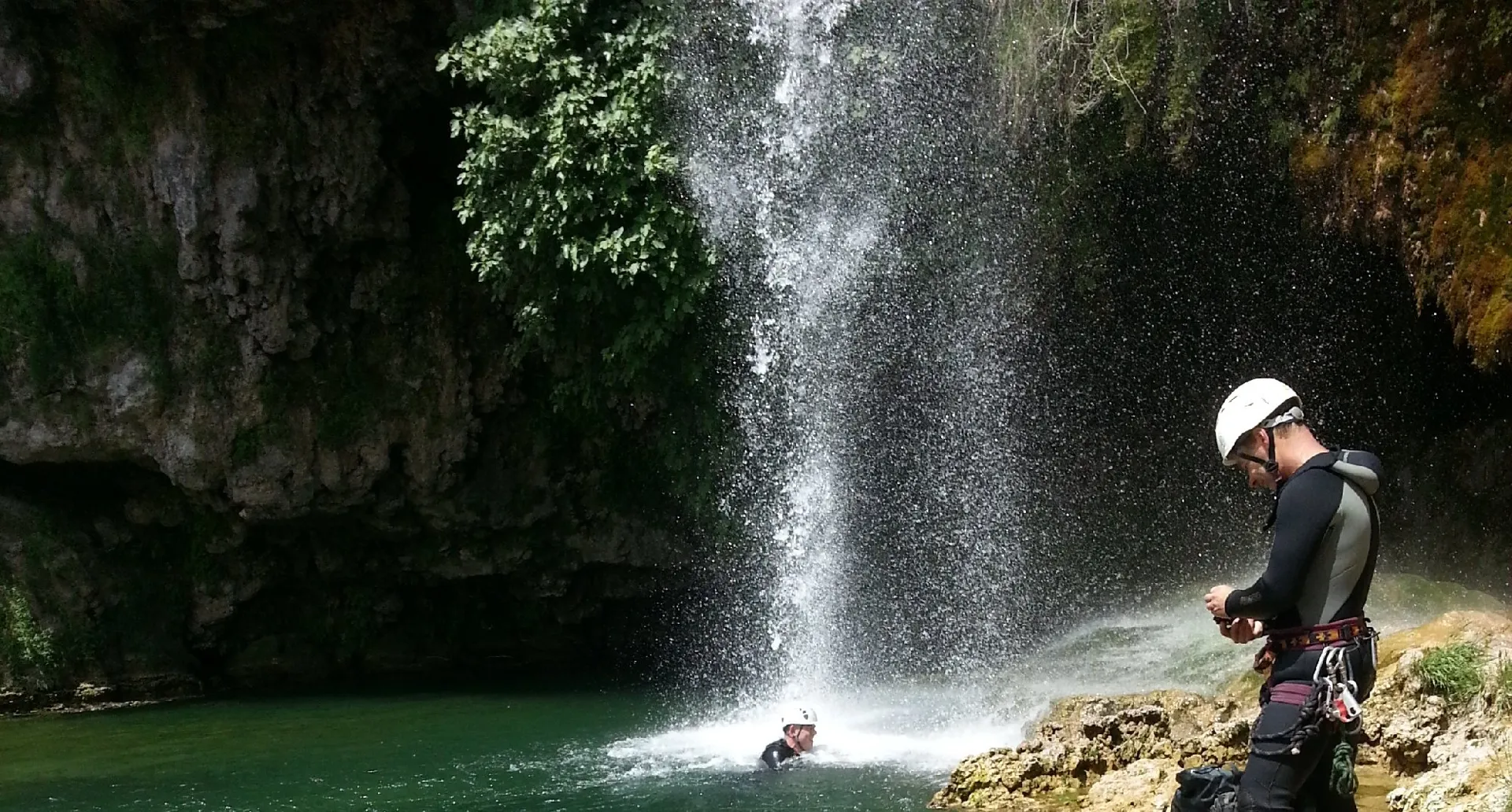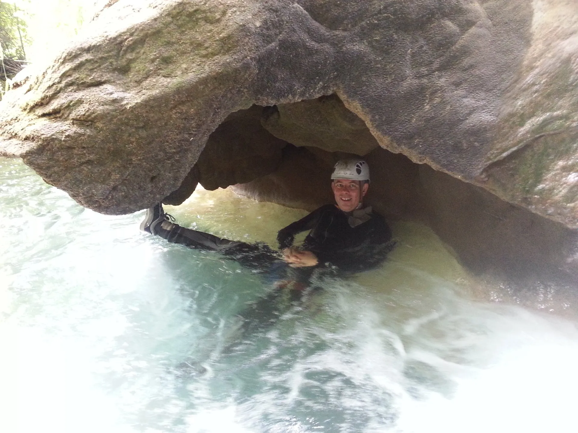 Randonnée les pieds dans l’eau en famille à partir de 8 ans. Petite promenade sportive et humide avec des petits sauts et parfois de la nage. Matériel fourni : combinaison et casque. Durée 1h30 à 2h.