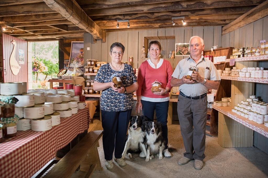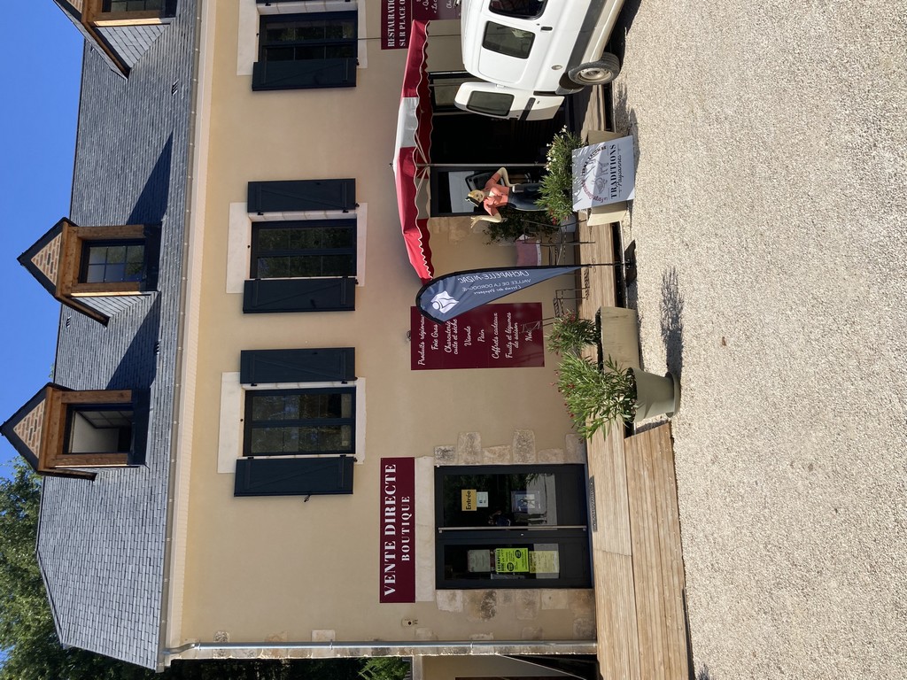 Tienda Traditions Paysannes con productos de la granja (foie gras, charcutería, productos regionales). Comida rápida de granja, in situ o para llevar, del miércoles por la noche al domingo al mediodía (ensaladas gastronómicas, platos principales, postres caseros).