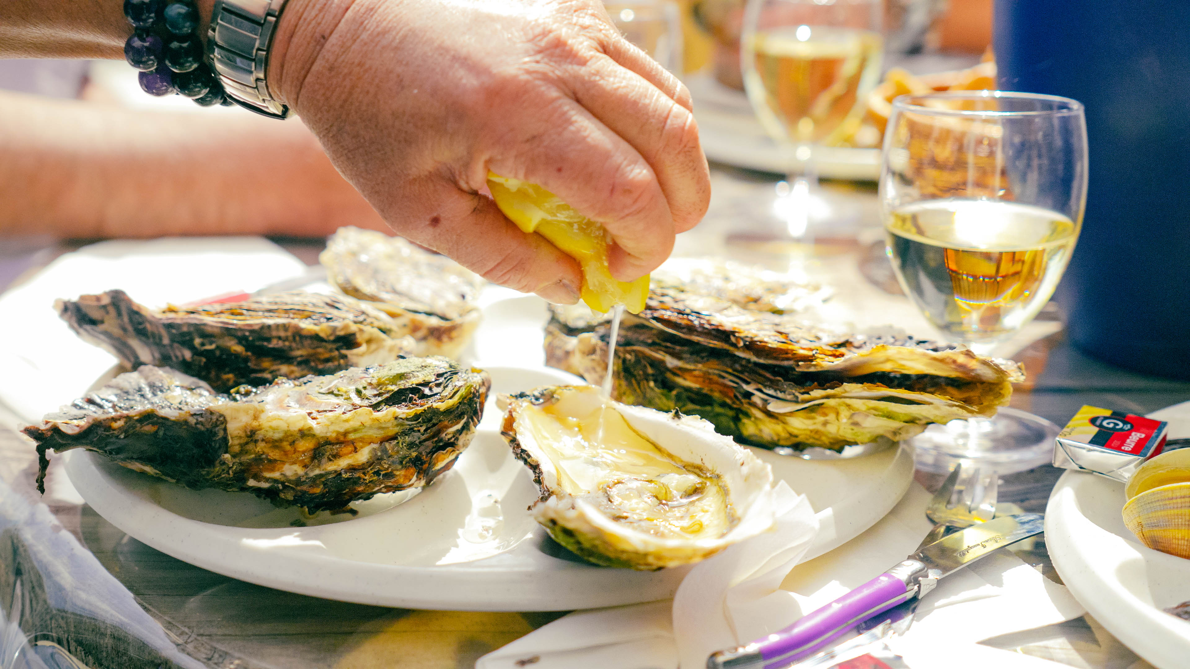 A las orillas de la laguna de Thau, en Mourre Blanc, un pueblo dedicado a la conquicultura en Mèze, Karine e Yvan Caussel, criadores de ostras y de mejillones del Mediterráneo, ofrecen su producción al por menor. Karine recibe en su granja a grupos grandes y pequeños con reserva. Su visita guiada le desvelará todos los secretos de las ostras: de la conservación a la preparación, pasando por el método de apertura. Al final de la exposición, una degustación de su producción de ostras especiales de primera calidad le reserva el mejor recuerdo. En un entorno panorámico, un almuerzo casero minuciosamente preparado: la mariscada variada cruda o cocinada le encantará. ¿Será capaz de encontrar alguna perla entre nuestras ostras? Insólito, ¡pero cierto!