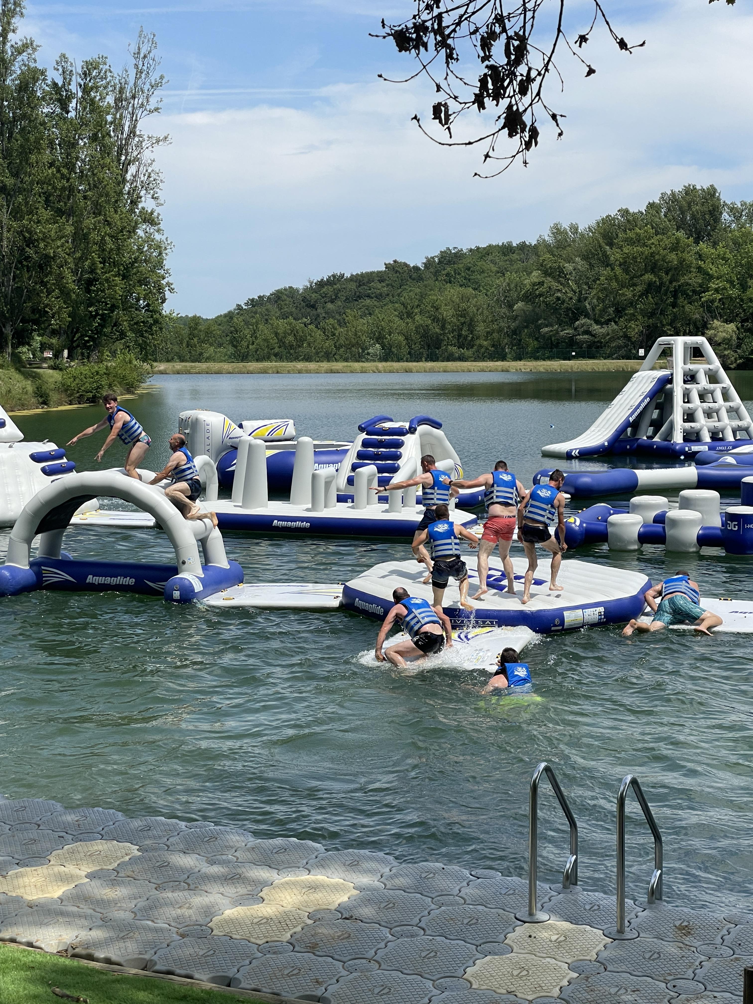 In the summer, come and enjoy a fun and refreshing experience at the Vallée de Loisirs of Lafrançaise. The Aquapark features an exciting water playground with diving boards, climbing walls, and slides for both kids and adults on the lake.