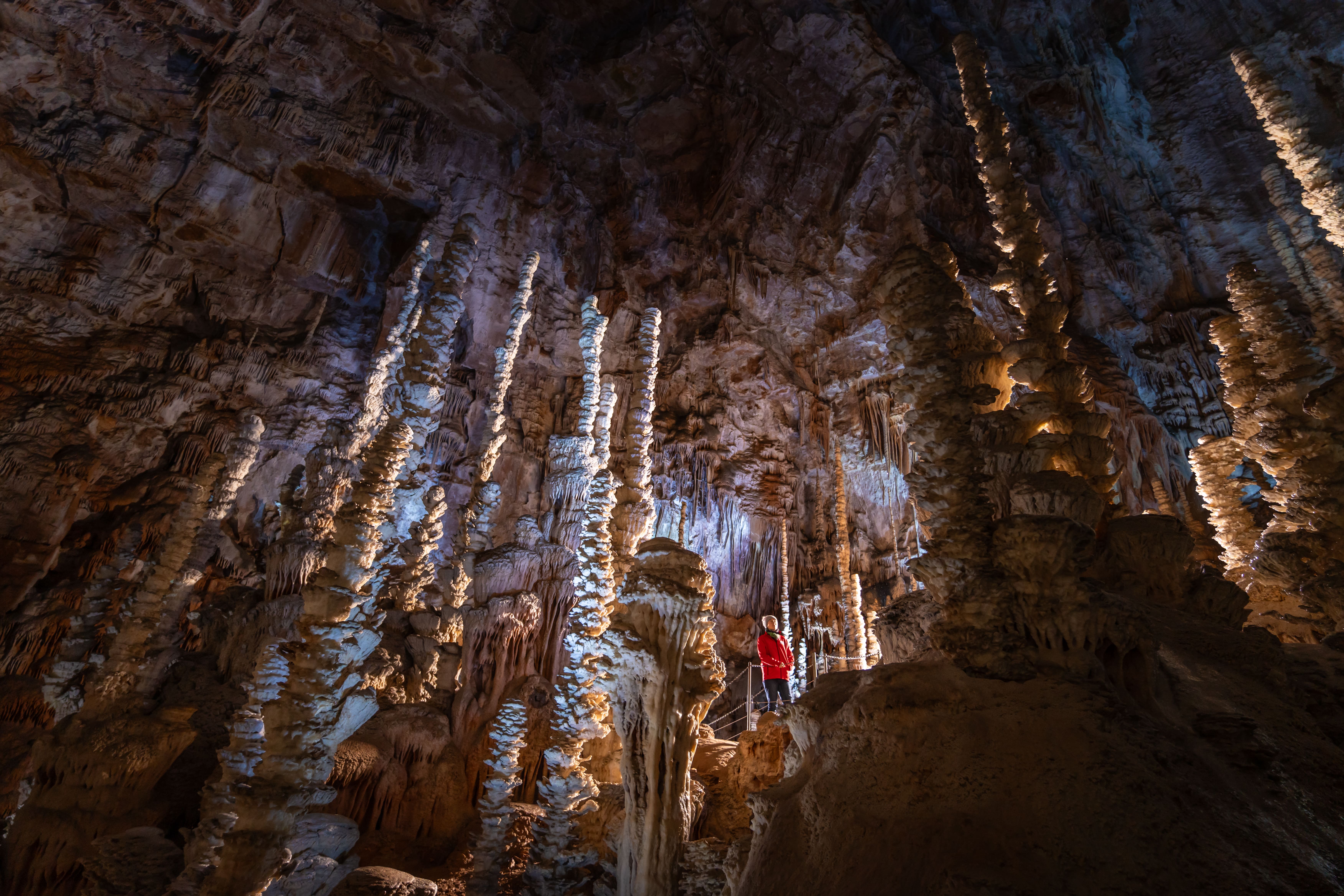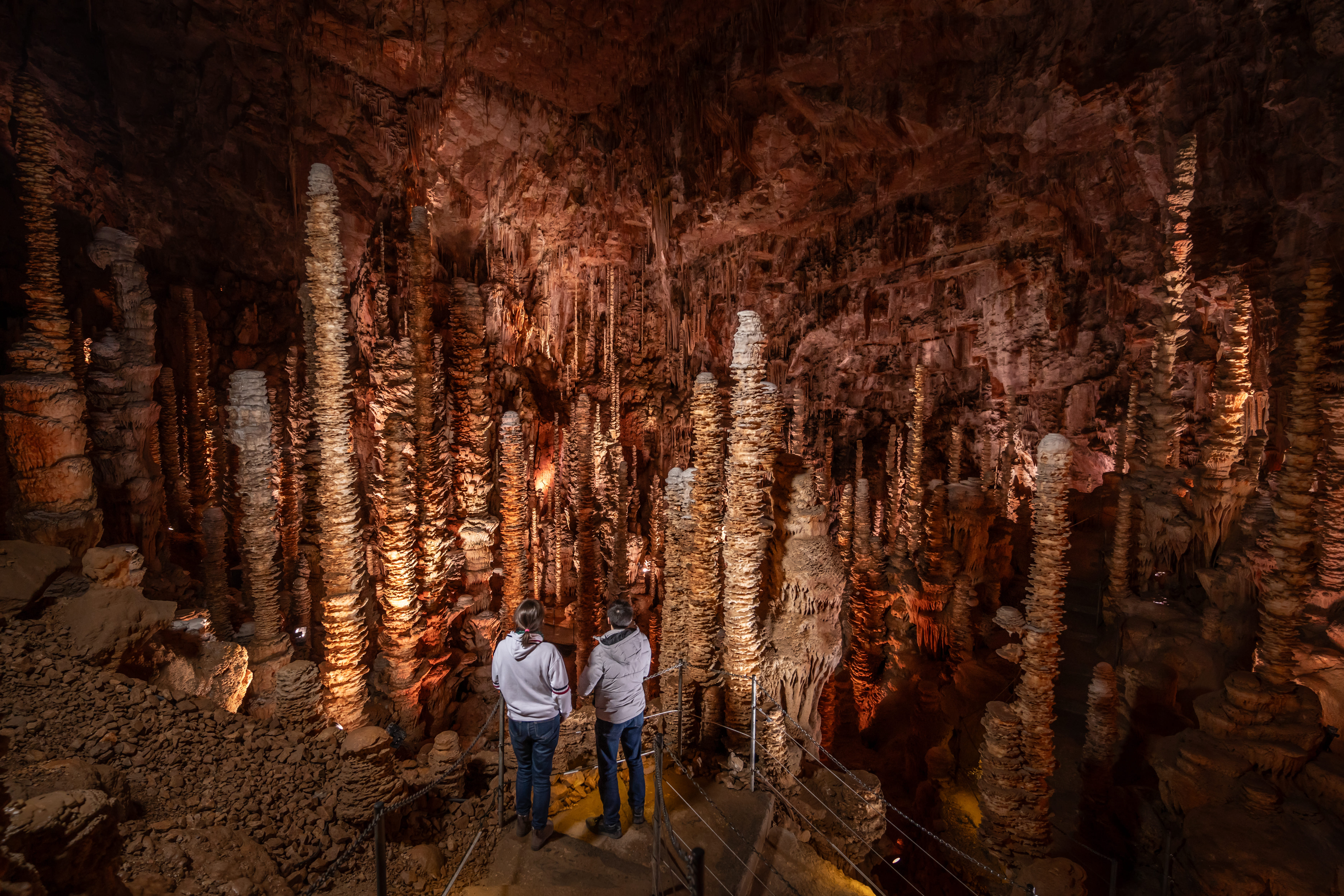 La sima del Aven ARMAND, descubierta en el Causse Méjean en 1897 por Louis Armand y Édouard-Alfred Martel, es una de las maravillas subterráneas más impresionantes. Tras un descenso en funicular que facilita enormemente el acceso, déjate guiar al corazón de un bosque de más de 400 estalagmitas, único en el mundo, para un viaje inolvidable al centro de la Tierra. Guías apasionados te acompañan a través de este mundo imaginario pero muy real, donde aparecen medusas, un pavo, un buitre, una palmera, grandes órganos… y la estalagmita más alta conocida hasta la fecha en una cavidad acondicionada, con sus 30 metros de altura. Magia, emoción y ensueño estarán presentes en este recorrido de una hora al centro de la Tierra.