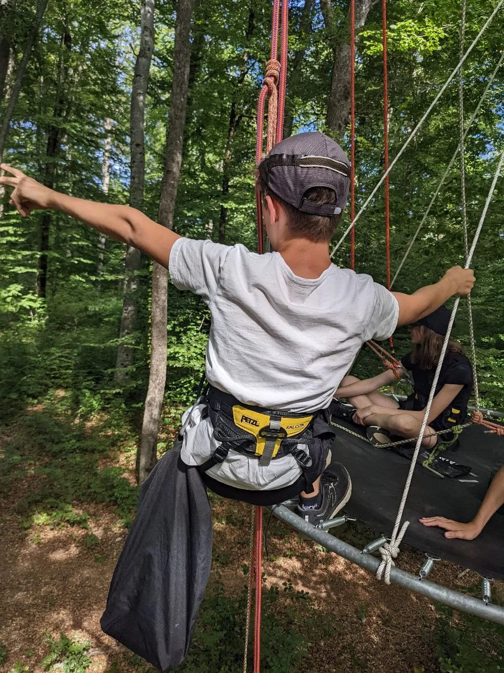 Nous installons aussi quand c’est possible des ateliers un peu plus spectaculaires comme des tyroliennes ou des ponts de singe.