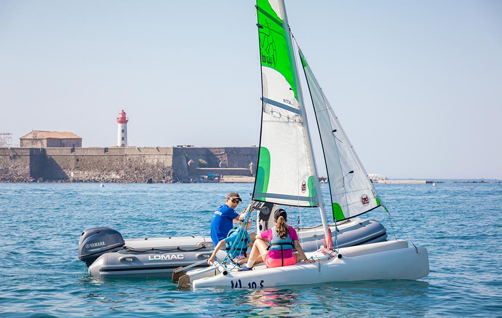 FFVOILE Beach Point rentals: catamaran, fun boat, dinghy, 1 or 2-seater canoe, stand-up paddle, pedalos. Equipment supplied. Technical assistance by an instructor.