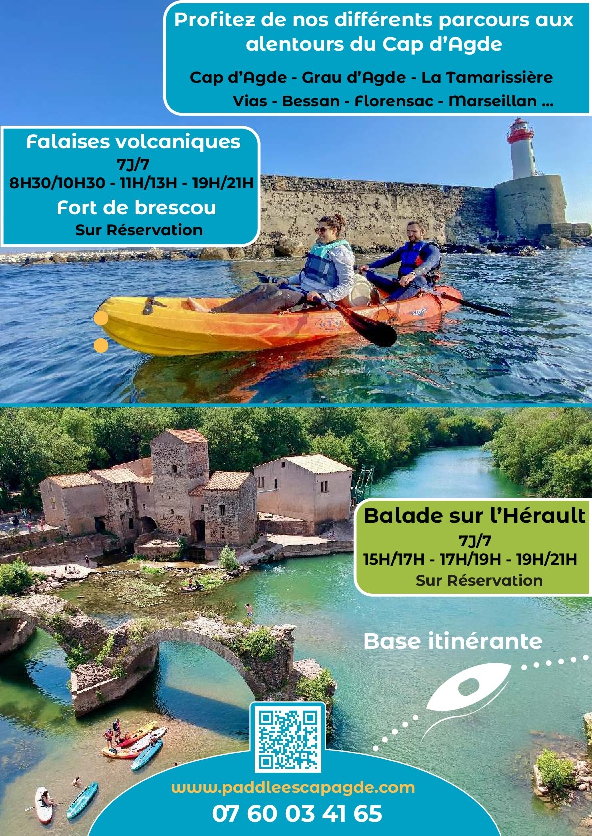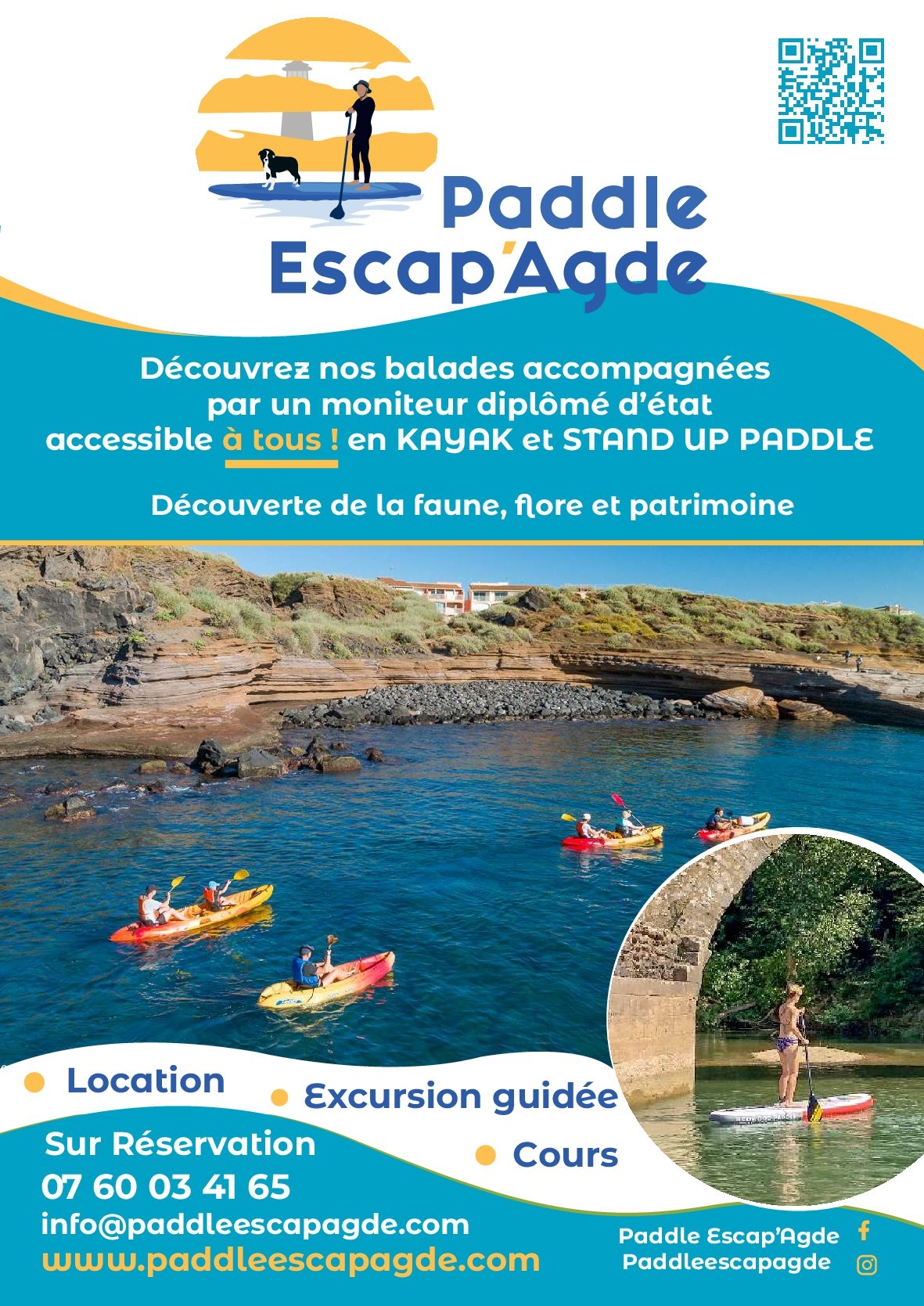 Paddle Escap’Agde vous propose des balades guidées, cours et locations de stand up paddle et kayak de mer aux alentours d’Agde, Le Cap d’Agde, Vias, Portiragnes, La Tamarissière, sur le fleuve Hérault, Marseillan, Mèze, Lac du Salagou…